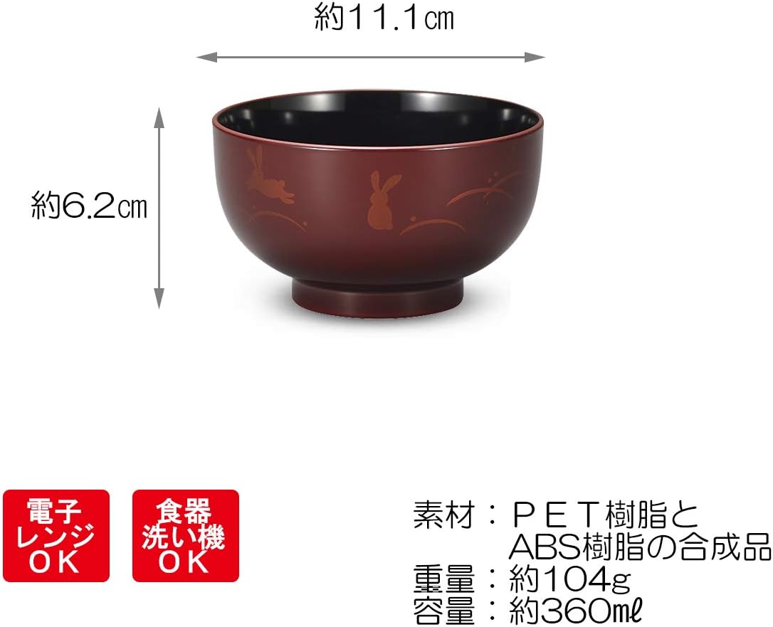 CTC-113525, Red, 4.3 x 2.4 inches (111 x 62 mm), Soup Bowl, Hollow Out, Rabbit, Inner Black, 5 Pieces