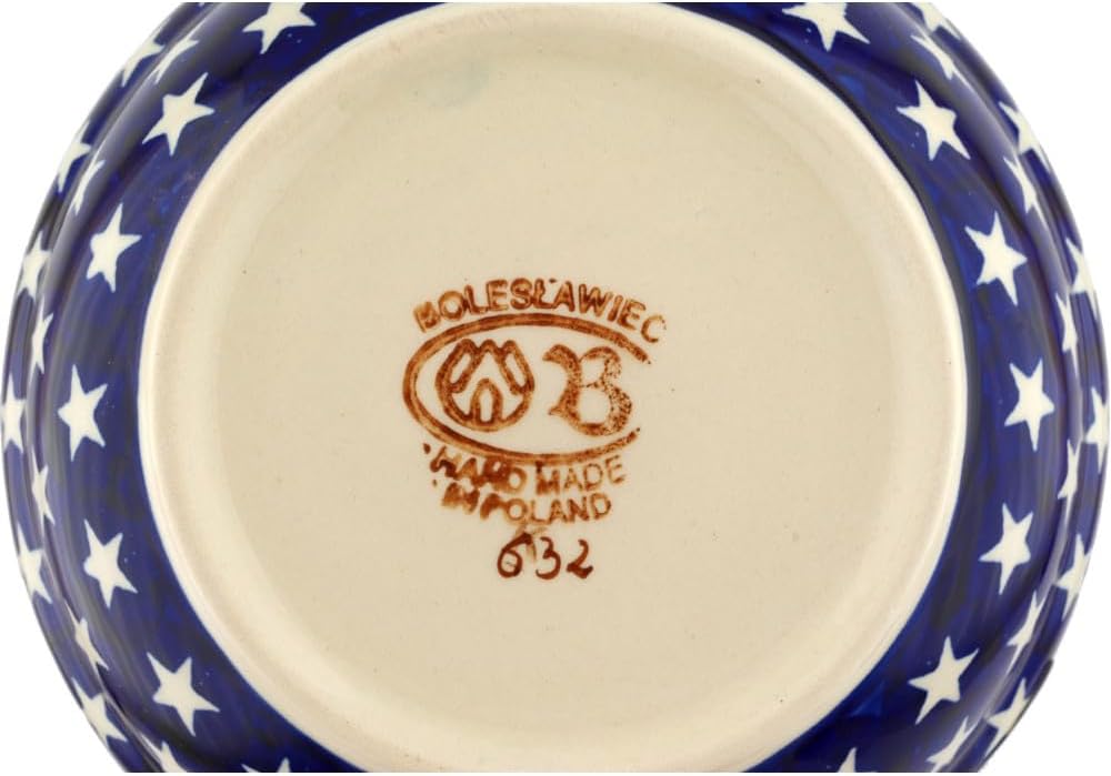 Genuine Polish Pottery handmade in Boleslawiec, Poland. Region celebrated for its long-standing ceramic tradition and artisanal craftsmanship.This authentic, hand-painted Polish stoneware Bowl in the America The Beautiful pattern is handcrafted by Zaklady Ceramiczne using traditional hand-painting and high-temperature firing techniques for lasting durability and everyday functionality.Certificate of Authenticity:Includes an official certificate verifying the handmade origin and authenticity of the piece.Care Instructions:Your order includes care instructions and helpful information, especially useful when gifting Polish Pottery.Dimensions:2.5" high, 6.6" wide, 6.6" long (max outside edge or handle).Capacity: 24 oz (filled to the rim).Certified Polmedia Polish Pottery Features:* Lead & Cadmium Free: Safe for everyday use.* Microwave Safe: Heat food or drinks with confidence.* Dishwasher Safe: Pattern will not fade.* Oven Safe (up to 480F): Excellent for baking and reheating.* Freezer Safe: High-fired stoneware handles temperature changes.* Chip & Scratch Resistant: Durable for daily use.* Hand-Painted Artistry: Decorated by skilled artisans.* Never-Fade Colors: Patterns remain vibrant forever.The Essence of Polish Pottery:For generations, artisans in Boleslawiec have crafted stoneware valued for durability, heat distribution, and long-lasting beauty. This tradition continues today in every piece of Polish Pottery.