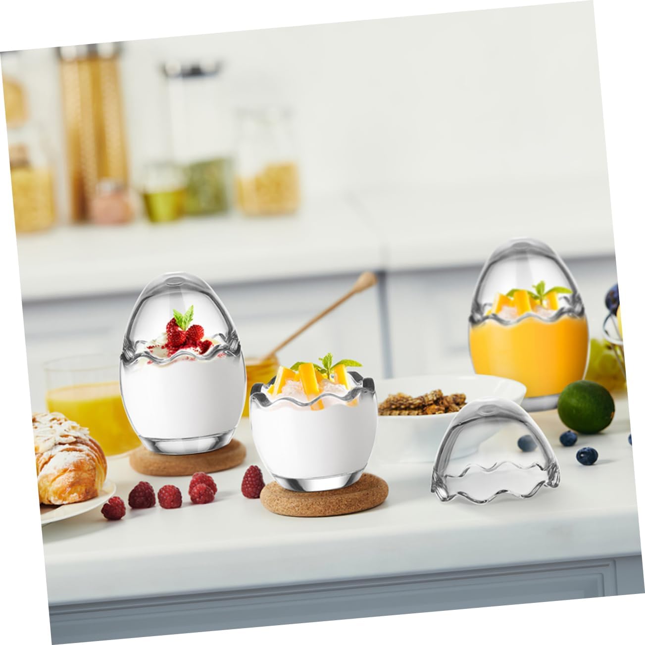 Package List 6 x lidded pudding cups Features -Material:Glass Glass Pudding Container -Functional and Stylish: These glass pudding jars combine utility with aesthetics, making them an essential addition to your kitchen pudding containers -Attractive Serving Option: Presenting desserts in these yogurt jars elevates your hosting game pudding containers with lids -Size:9.20X6.00X6.00cm/3.62X2.36X2.36in pudding bottle -Glass yogurt bottle: Designed with safety in mind, these yogurt jars are ideal for serving treats to glass dessert holder -Ideal for Meal Prep: Use these yogurt jars for pre-portioned snacks or desserts, simplifying your meal planning routine glass custard cups -Convenient for Travel: Lightweight yet sturdy, nice for bringing along your favorite snacks on the go yogurt cups glass -Color:Transparent reusable yogurt cupsGoods InformationGlass Pudding Container Designed to meet the needs of dessert enthusiasts, these glass cups.yogurt glass cup Their glass material for versatile cooking methods, while the elegant appearance complements any kitchen decor.glass mousse cups Ideal for pudding, yogurt, or jelly