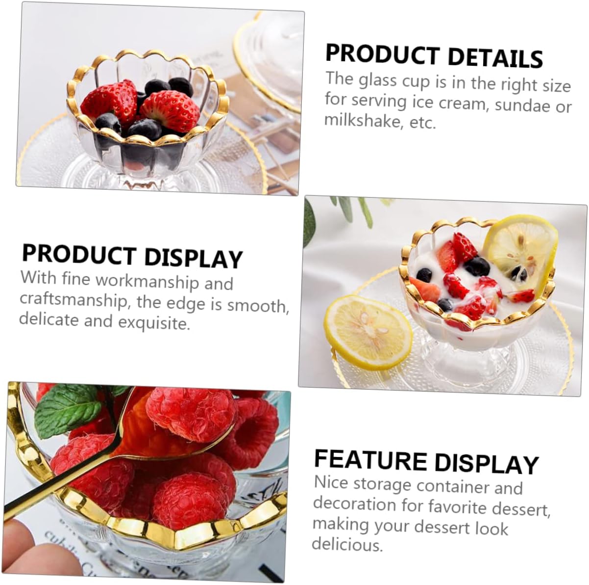 • Glass ice cream cup:it can be used as a dessert cup, and it will greatly increase your appetite,glass dessert cup