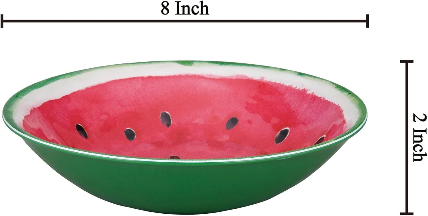 Set a gorgeous dinner table with watermelon print pieces that coordinate perfectly. These watermelon melamine bowl set are attractive, functional and a welcome addition to any indoor or outdoor table. It's shatterproof and food safe properties, perfect for entertaining, this set will be a fun addition to your summer and fruit party, or use daily to add a bit of joy to your everyday. Easy to clean and dishwasher safe.