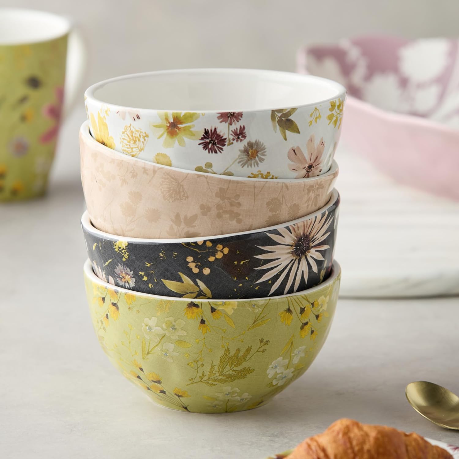 | Item Type Name | Wildflowers Ceramic ICE CREAM/DESSERT BOWLS, SET OF 4, 5.25 x 3 inch assorted floral watercolor bowls, perfect for desserts, snacks, fruit, side servings and artistic garden‑inspired table settings |