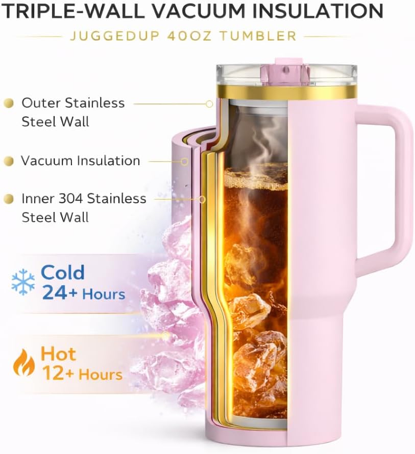 Elevate your hydration with the JuggedUp Hydra Tumbler — a 40 oz triple-wall insulated stainless-steel cup engineered for all-day performance. Designed with a durable handle, dust-proof flip straw lid, and cup-holder compatible base, the Hydra Tumbler keeps drinks ice-cold for up to 24 hours or hot for 12 hours. Its leak-resistant design and polished JuggedUp branding make it the ultimate everyday travel companion — from workouts to road trips, office days, or outdoor adventures. Hydrate. Elevate. JuggedUp.