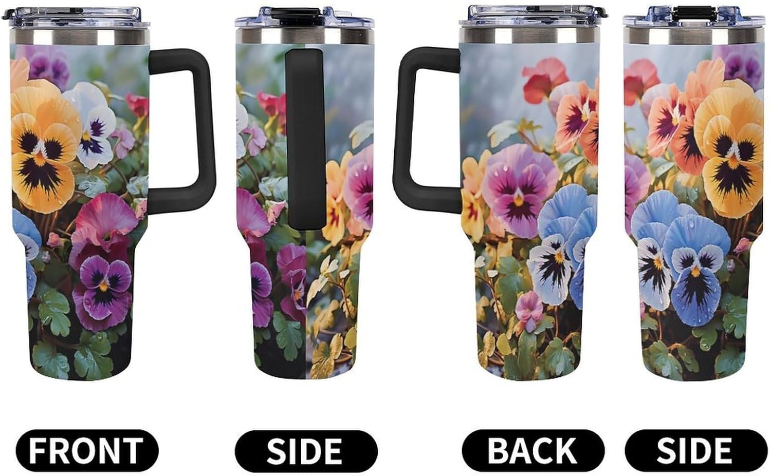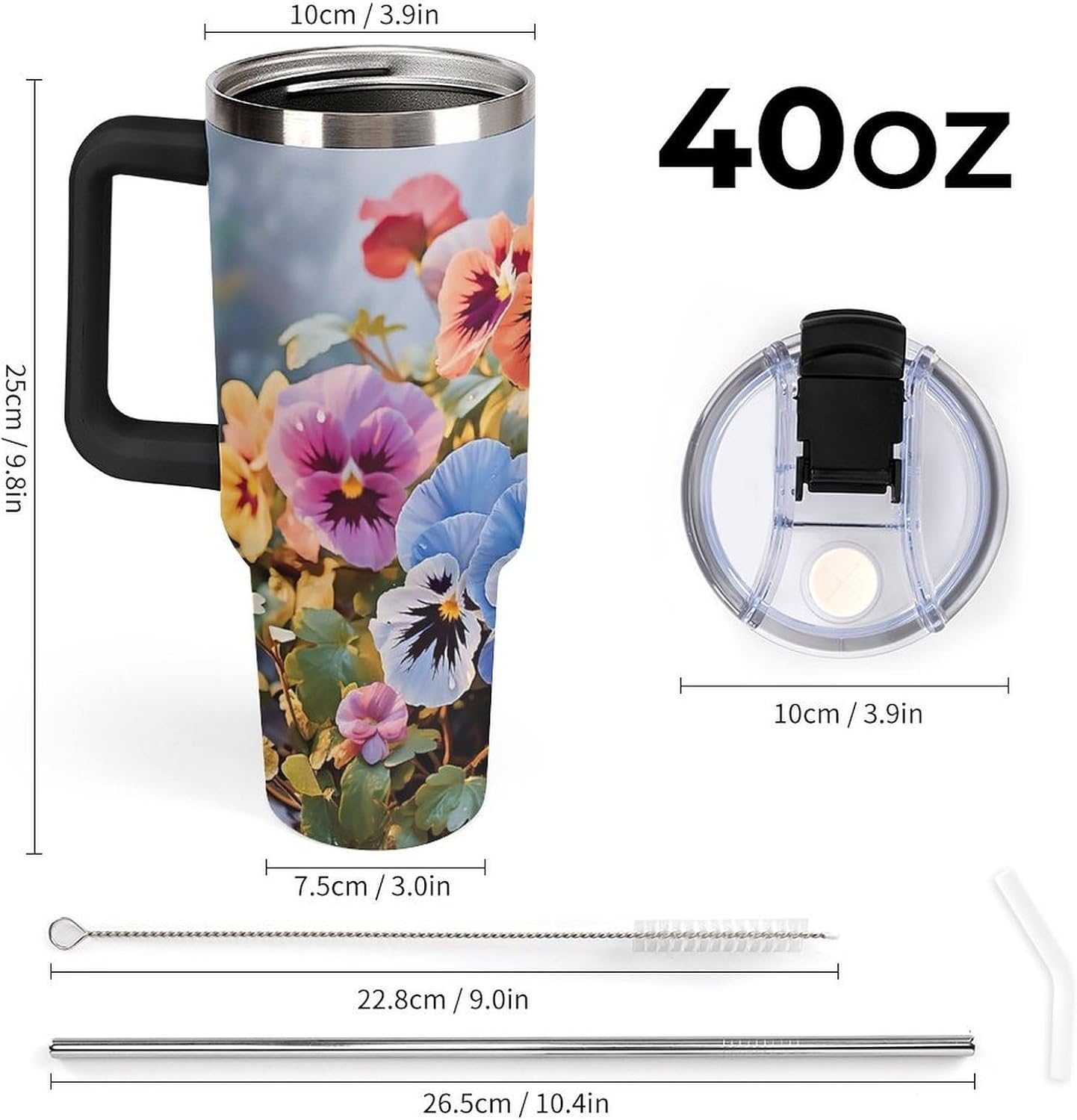 40 oz Tumbler: Keep Your Drinks Hot or Cold for Longer Perfect for long trips or days at the beach, this 40 oz thermal tumbler keeps your drinks at the perfect temperature for hours. The Tumbler is made from 304 stainless steel and fits standard cupholders, and with a variety of pattern options, you can get an Emotional Support Water Bottle. Its double-wall stainless steel design ensures optimal insulation, while the leak-proof lid prevents spills. Plus, its 180-degree rotating handle adds convenience and practicality to your daily adventures. Capacity: 40 oz (approx. 1.2 liters) Double-wall insulation Leak-proof lid 180-degree rotating handle Enjoy your favorite drinks anytime, anywhere with this versatile and practical thermal tumbler! Tumbler is double walled and vacuum insulated to keep your drink hot or cold for hours. The cup is outfitted with an ergonomic handle, that is aesthetically designed for comfort. It comes with a straw lid and two straws so you can enjoy your favorite beverage on the go.