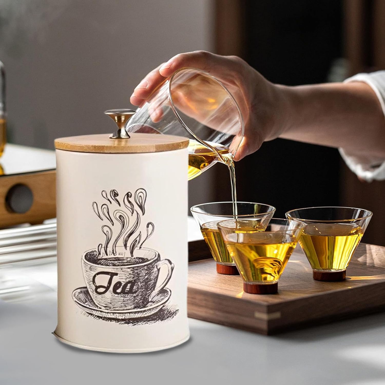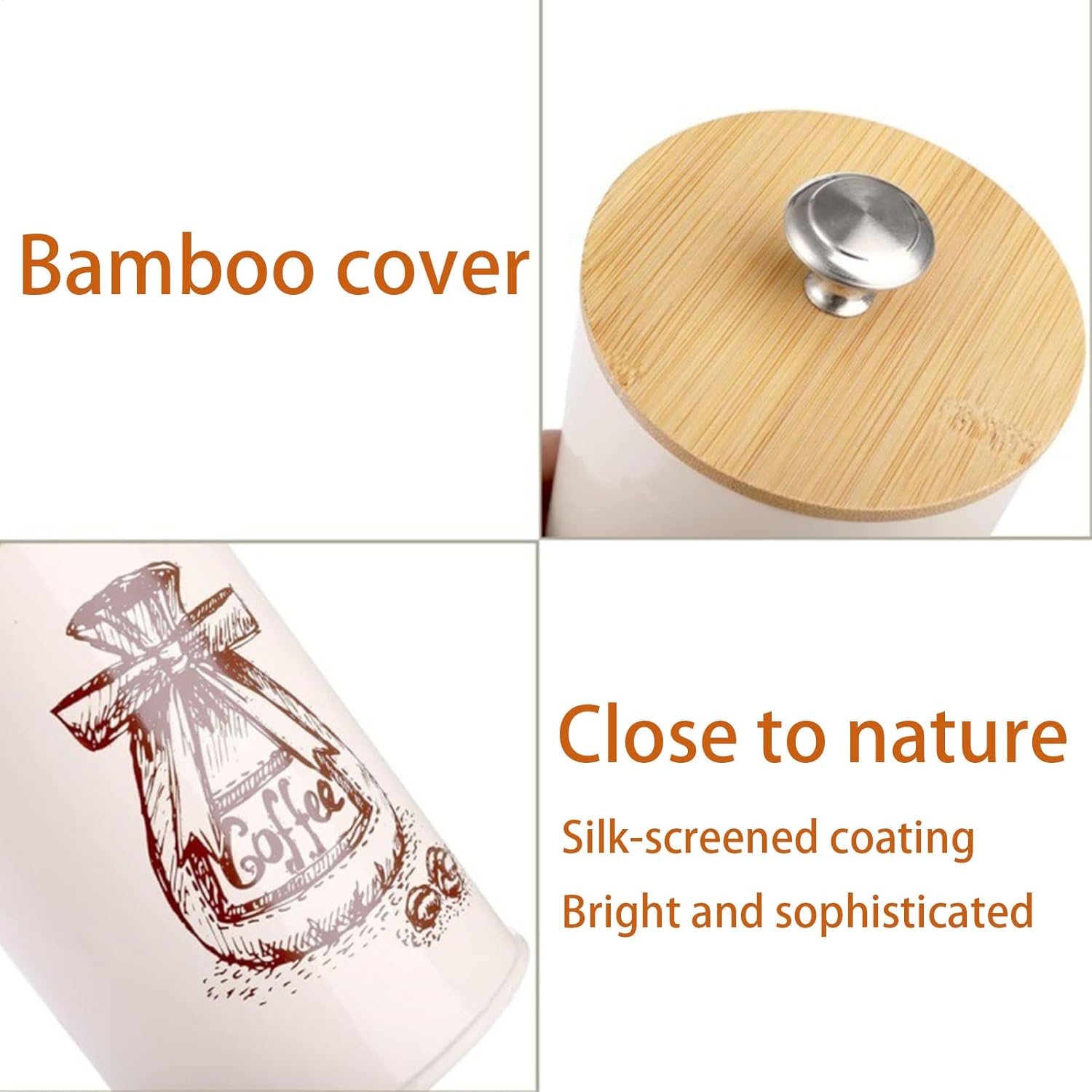 Keep your coffee refresh for longer with our stable Coffee Storage Container. Its sealing structure locks in freshness, while the wide mouth design allows for easy filling. Simply wipe with a damp cloth and dry.Specification:Single net weight: 170gMaterial: iron + woodSingle size: about 9.5x9.5x15.5cm/3.74x3.74x6.1 inchesProduct List:1 Set* Coffee Canister (3 pieces)Notes: Due to the lighting effects and filming angles, there is a color difference in the product, please understand.Due to manual measurement, there is a tolerance in the product size.The actual product shall prevail, thank you!