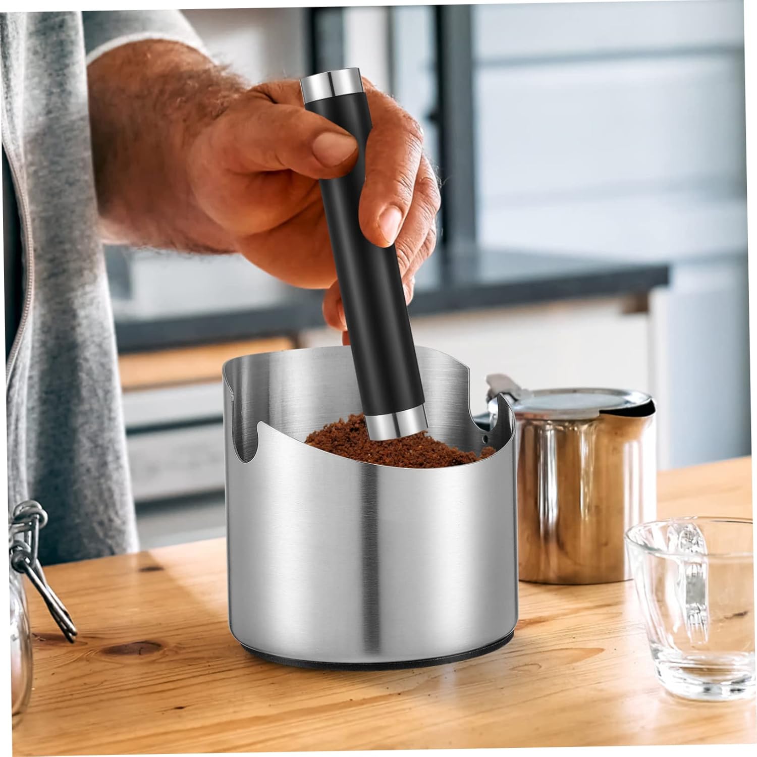 • Coffee grounds container for home--the coffee knock box is made of stainless steel material, easy to clean, and easy to use,container for coffee
