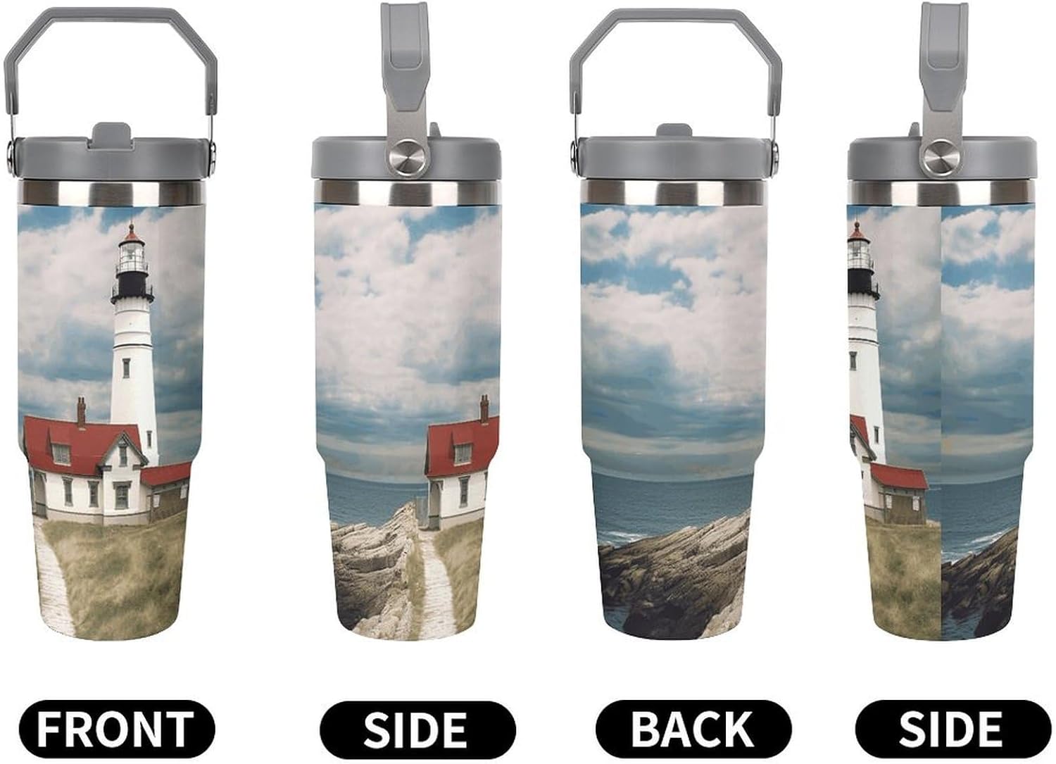 Our Lighthouse Backdrop travel water bottle is made of food-grade stainless steel. The wide mouth design makes it easy to clean and add ice, and the powder-coated exterior is non-slip and durable, ensuring driving safety.Whether you prefer sipping or quenching your thirst, this personalized insulated mug has you covered. Featuring a splash-proof straw design, a sealing ring securely holds the reusable straw, and a drinking spout and full-coverage lid for enhanced leak-proof performance, this mug allows you to easily carry ice water to work, meetings, the gym, or on trips.You can give it to your friends and family as a birthday, Mother's Day, Father's Day, New Year's, Thanksgiving, and holiday gift. It's a thoughtful present.