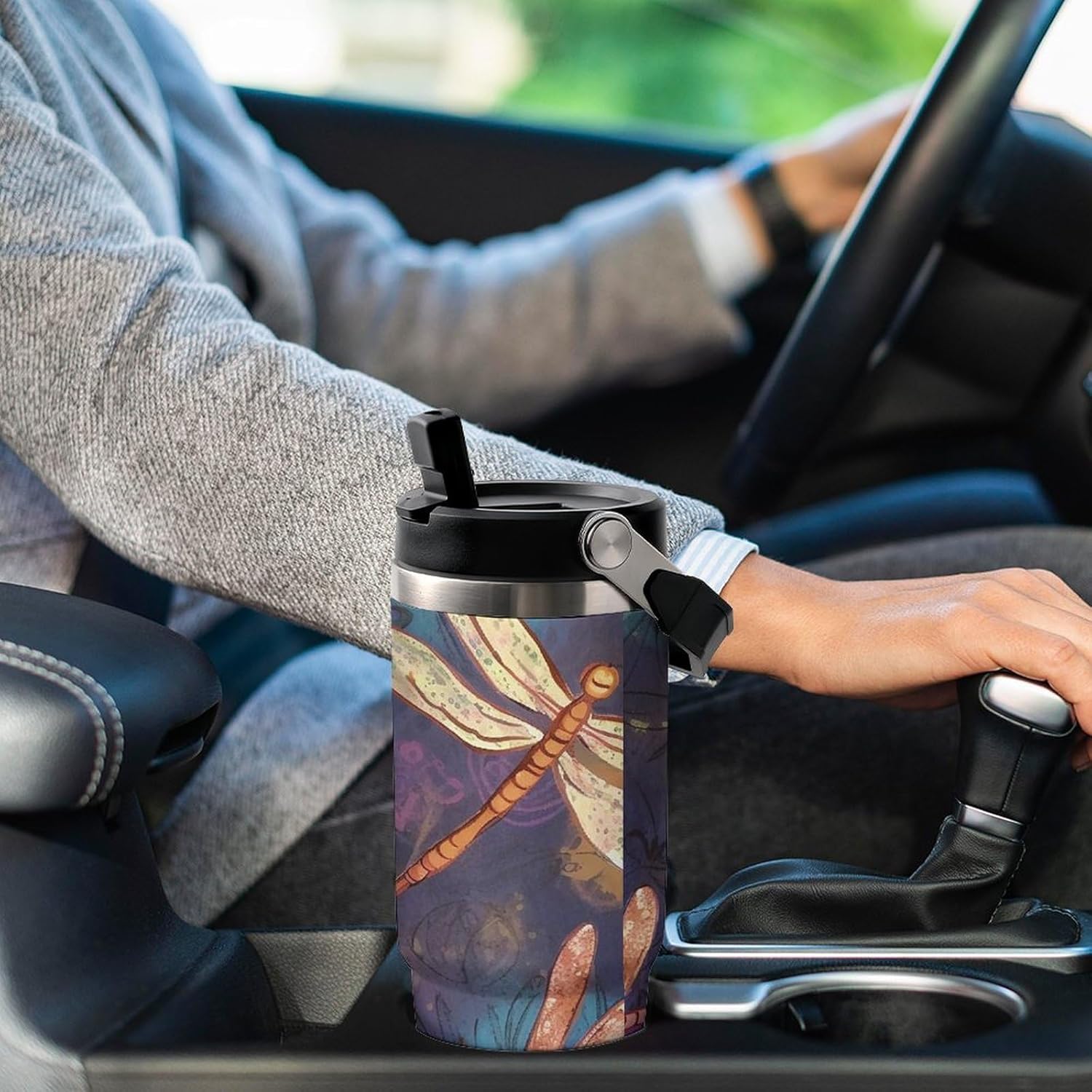 Our Hand Painted Dragonfly travel water bottle is made of food-grade stainless steel. The wide mouth design makes it easy to clean and add ice, and the powder-coated exterior is non-slip and durable, ensuring driving safety.Whether you prefer sipping or quenching your thirst, this personalized insulated mug has you covered. Featuring a splash-proof straw design, a sealing ring securely holds the reusable straw, and a drinking spout and full-coverage lid for enhanced leak-proof performance, this mug allows you to easily carry ice water to work, meetings, the gym, or on trips.You can give it to your friends and family as a birthday, Mother's Day, Father's Day, New Year's, Thanksgiving, and holiday gift. It's a thoughtful present.