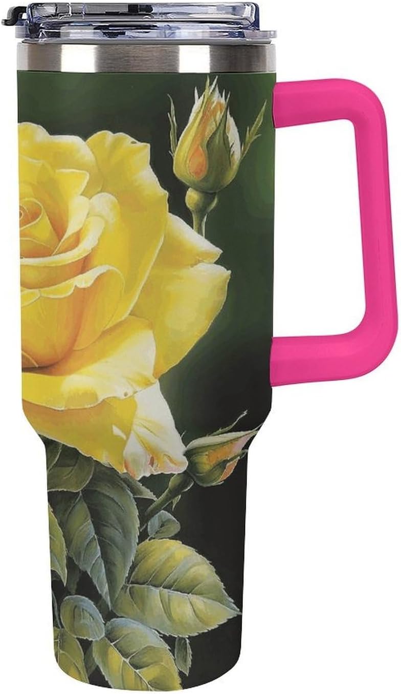 Crafted with 304 stainless steel, this Double Wall Vacuum Yellow Rose Travel Mug prioritizes both durability and safety. Its sleek design earns it the title of a Fashion Coffee Cup, complementing any setting from your kitchen counter to your car's cup holder. The Cupholder Friendly Double Wall Travel Cup shape ensures stability, even on bumpy roads, making it an ideal Travel Coffee Mug for those always on the move.This 40 oz Yellow Rose Stainless Steel Bottles is more than just a drinkware item—it's a lifestyle essential designed for modern living. As a Vacuum Insulated Tumbler, it leverages double-wall technology to keep your drinks hot or cold for hours, making it the perfect Insulated Coffee Cup for early mornings and late afternoons alike. The BPA-free lid with a stainless steel straw offers two convenient drinking options, while the leak-proof seal ensures peace of mind during your daily commute or outdoor trips.Whether you're heading to work, embarking on a road trip, or simply relaxing at home, this Large Travel Flask adapts to your needs. Its generous capacity eliminates the need for frequent refills, while the easy-to-clean interior and included brush simplify maintenance. Embrace the convenience and style of this Cute Travel Mug—a must-have for anyone who values functionality without compromising on aesthetics.Insulated Coffee Cup Travel Coffee Mug Vacuum Insulated Tumbler Cute Travel Mug Double Wall Vacuum Travel Mug Stainless Steel Coffee Mug Insulated Car Cup Stainless Steel Bottles Coffee Tumbler Vacuum Travel Mug Leak-proof Large Capacity Car Cup Keeps Cold or Hot Portable Coffee Cup Insulated Water Bottle Stainless Steel Water Bottles Fits in Any Car Cup Holders Large Capacity Metal Coldest Flask Reusable Mug with Straw or Leakproof Flip Lid, Keeps Drinks Cold Insulated Stainless Steel Cup Insulated Coffee Mug Thermal Cup Stainless Steel Tumbler Reusable Cup with Straw Leak
