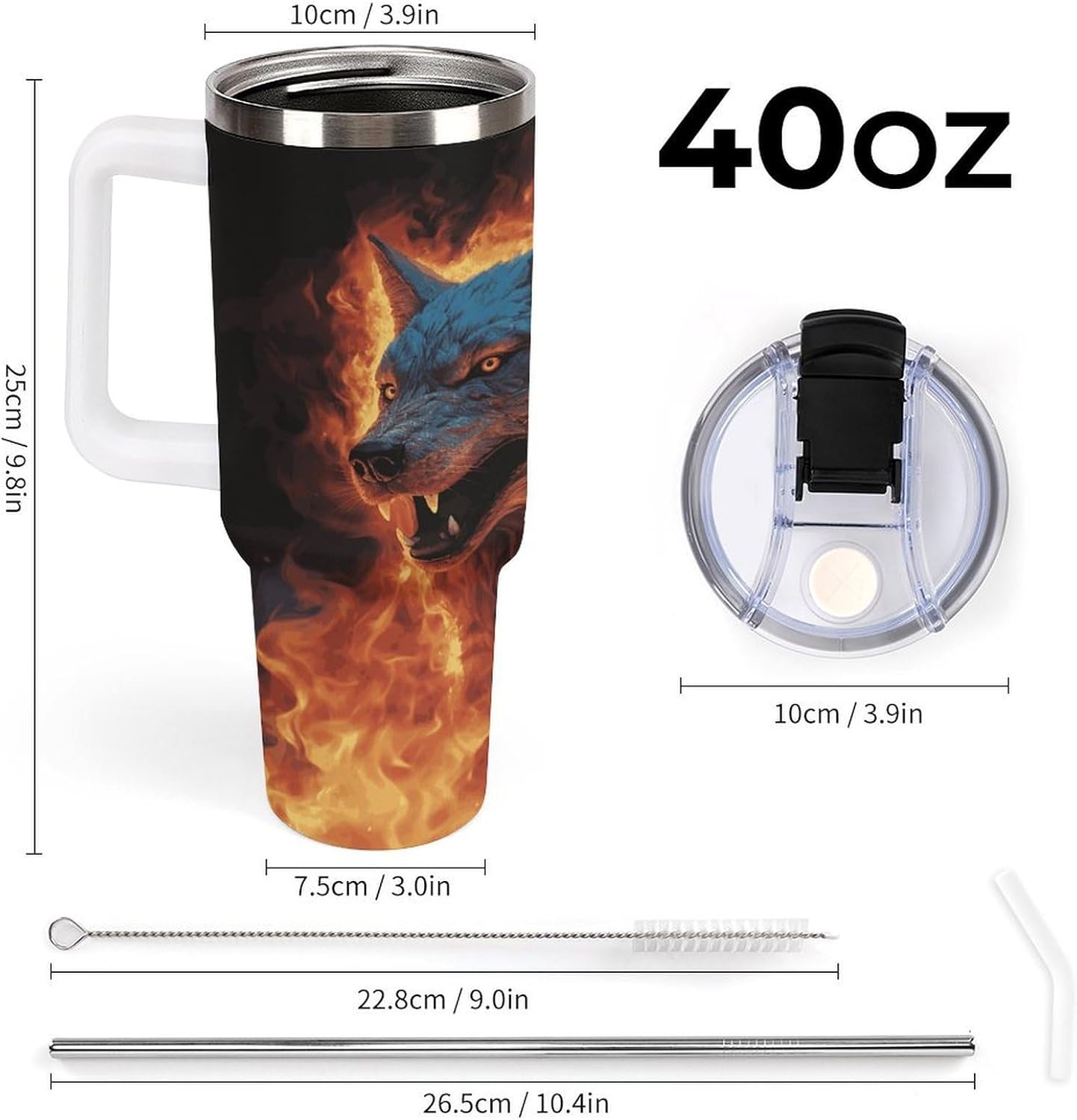 Crafted with 304 stainless steel, this Double Wall Vacuum Wolf Surrounded by Fire Travel Mug prioritizes both durability and safety. Its sleek design earns it the title of a Fashion Coffee Cup, complementing any setting from your kitchen counter to your car's cup holder. The Cupholder Friendly Double Wall Travel Cup shape ensures stability, even on bumpy roads, making it an ideal Travel Coffee Mug for those always on the move.This 40 oz Wolf Surrounded by Fire Stainless Steel Bottles is more than just a drinkware item—it's a lifestyle essential designed for modern living. As a Vacuum Insulated Tumbler, it leverages double-wall technology to keep your drinks hot or cold for hours, making it the perfect Insulated Coffee Cup for early mornings and late afternoons alike. The BPA-free lid with a stainless steel straw offers two convenient drinking options, while the leak-proof seal ensures peace of mind during your daily commute or outdoor trips.Whether you're heading to work, embarking on a road trip, or simply relaxing at home, this Large Travel Flask adapts to your needs. Its generous capacity eliminates the need for frequent refills, while the easy-to-clean interior and included brush simplify maintenance. Embrace the convenience and style of this Cute Travel Mug—a must-have for anyone who values functionality without compromising on aesthetics.Insulated Coffee Cup Travel Coffee Mug Vacuum Insulated Tumbler Cute Travel Mug Double Wall Vacuum Travel Mug Stainless Steel Coffee Mug Insulated Car Cup Stainless Steel Bottles Coffee Tumbler Vacuum Travel Mug Leak-proof Large Capacity Car Cup Keeps Cold or Hot Portable Coffee Cup Insulated Water Bottle Stainless Steel Water Bottles Fits in Any Car Cup Holders Large Capacity Metal Coldest Flask Reusable Mug with Straw or Leakproof Flip Lid, Keeps Drinks Cold Insulated Stainless Steel Cup Insulated Coffee Mug Thermal Cup Stainless Steel Tumbler Reusable Cup with Straw Leak