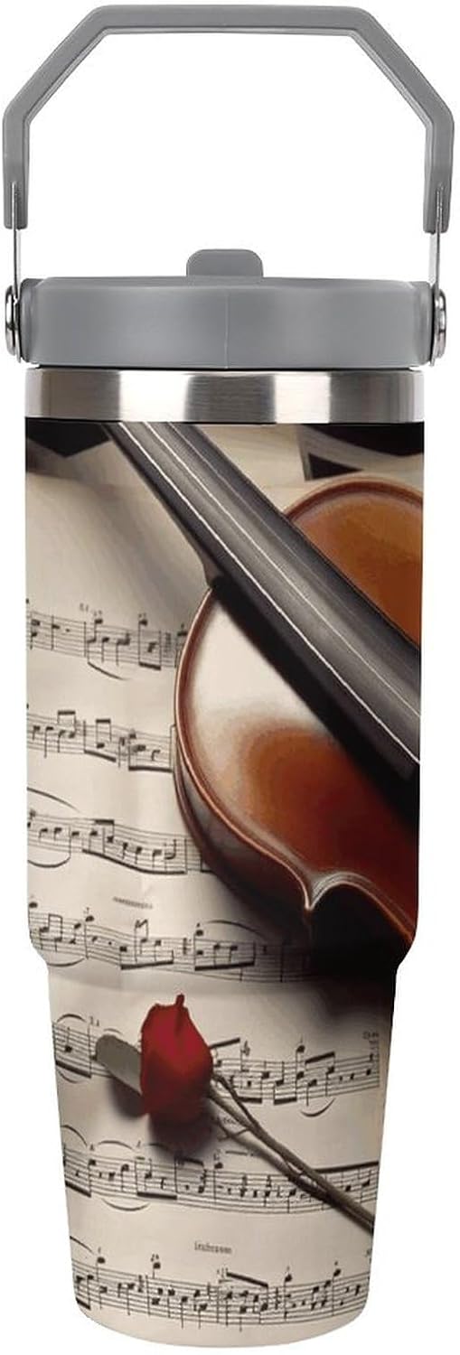 Our Violin Sheet Music travel water bottle is made of food-grade stainless steel. The wide mouth design makes it easy to clean and add ice, and the powder-coated exterior is non-slip and durable, ensuring driving safety.Whether you prefer sipping or quenching your thirst, this personalized insulated mug has you covered. Featuring a splash-proof straw design, a sealing ring securely holds the reusable straw, and a drinking spout and full-coverage lid for enhanced leak-proof performance, this mug allows you to easily carry ice water to work, meetings, the gym, or on trips.You can give it to your friends and family as a birthday, Mother's Day, Father's Day, New Year's, Thanksgiving, and holiday gift. It's a thoughtful present.
