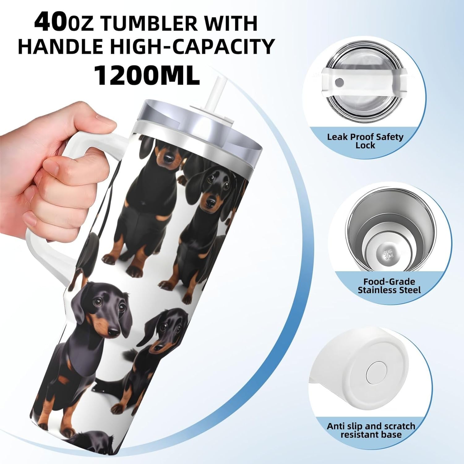 This Dachshund Weiner Pet Dog Print Ice Bully Cup features a double layer stainless steel design that can be used for a long time without rusting. The lid has good sealing to prevent water from overflowing, and it is easy to unscrew for filling and cleaning. It can keep water, coffee, or drinks warm or cool for hours and is suitable for travel, camping, and driving.