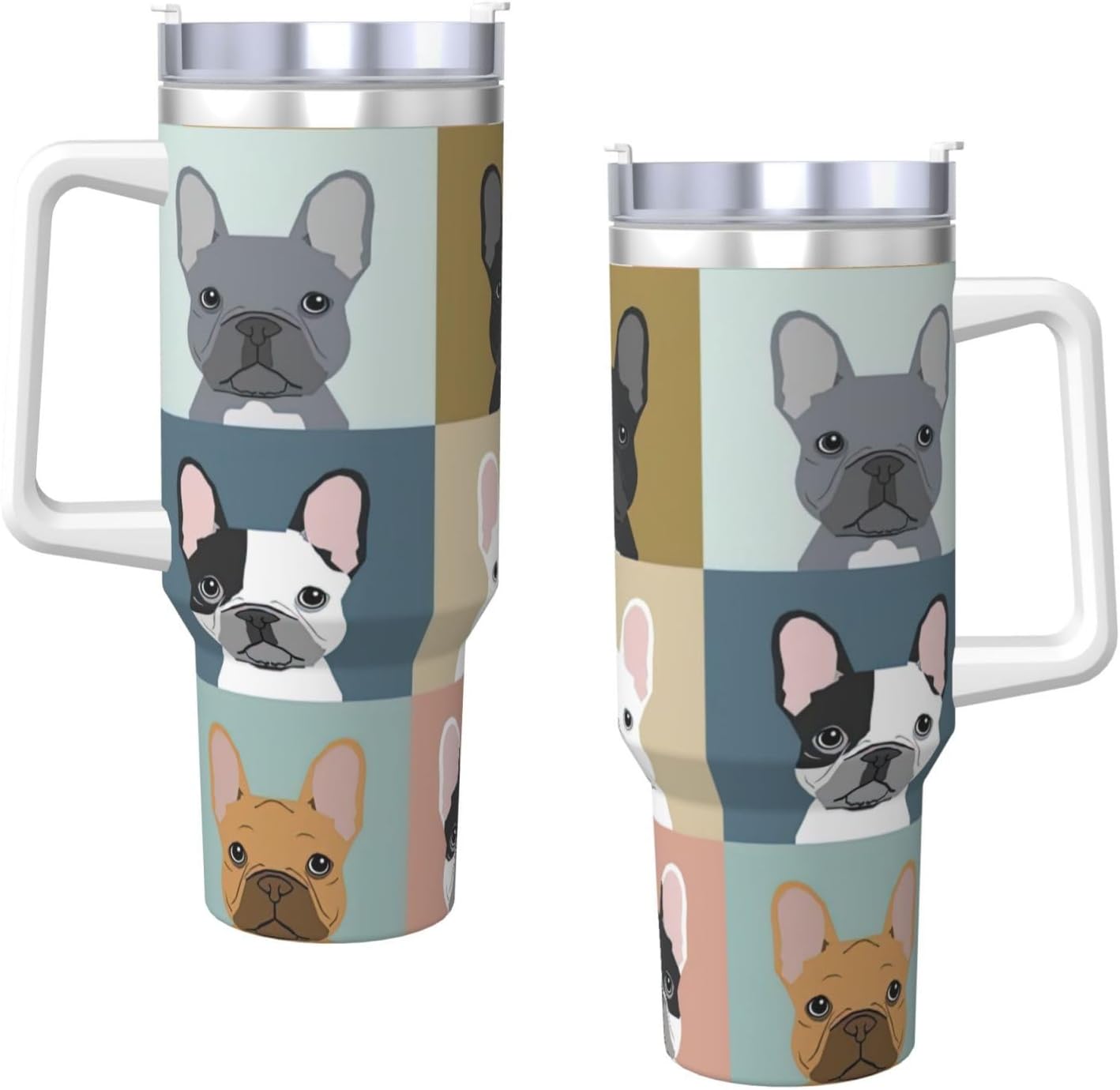This french bulldog Print Ice Bully Cup features a double layer stainless steel design that can be used for a long time without rusting. The lid has good sealing to prevent water from overflowing, and it is easy to unscrew for filling and cleaning. It can keep water, coffee, or drinks warm or cool for hours and is suitable for travel, camping, and driving.