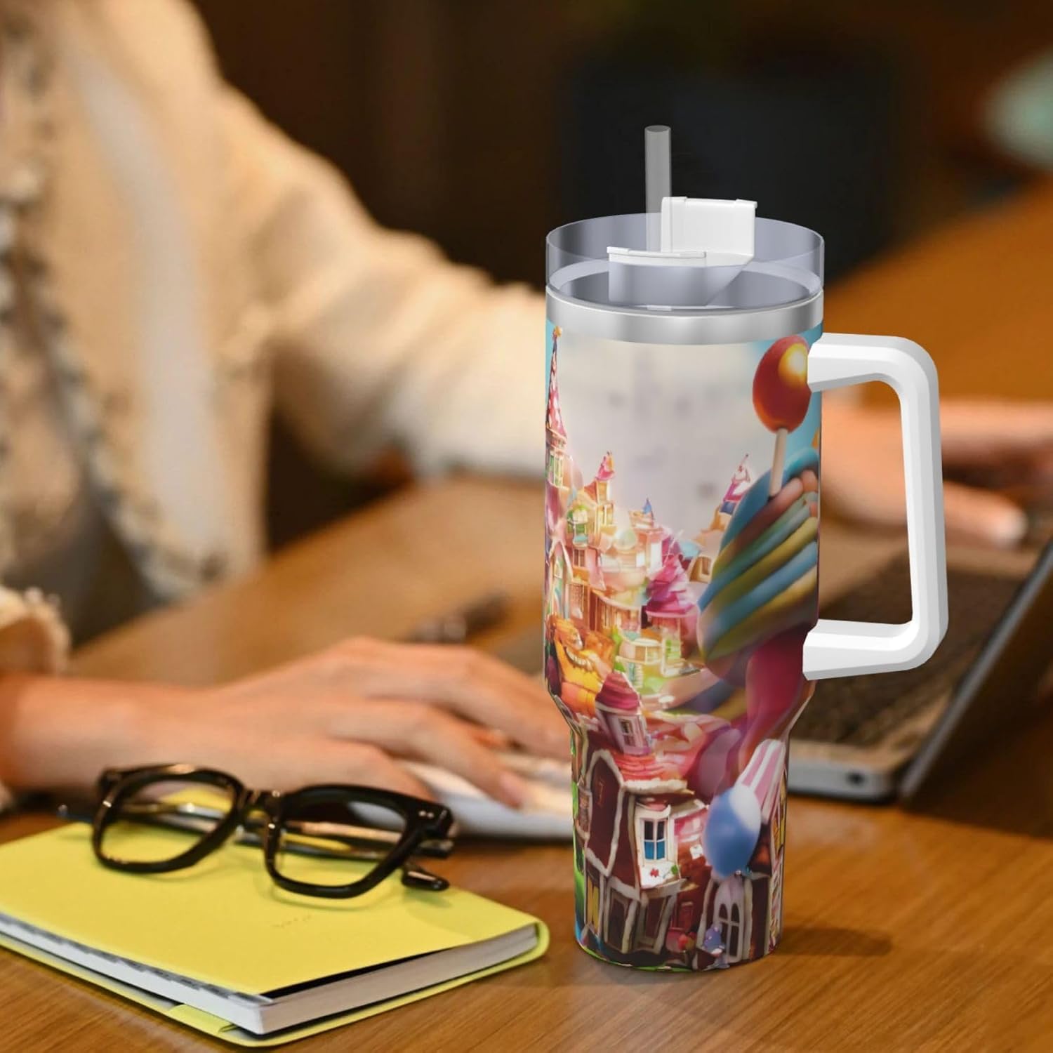 This Candy Land Print Ice Bully Cup features a double layer stainless steel design that can be used for a long time without rusting. The lid has good sealing to prevent water from overflowing, and it is easy to unscrew for filling and cleaning. It can keep water, coffee, or drinks warm or cool for hours and is suitable for travel, camping, and driving.