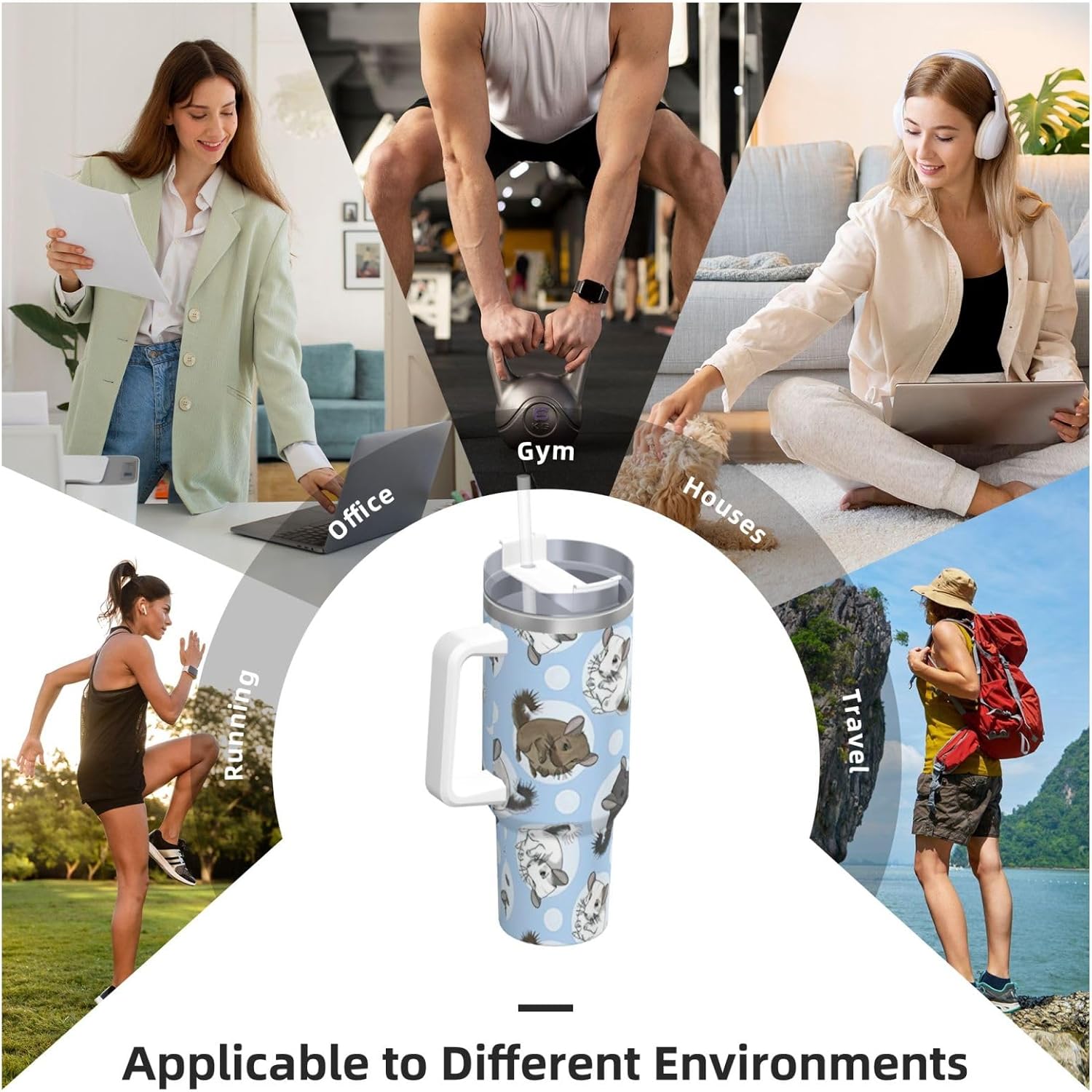 This Blue Chinchillas And Moon Print Ice Bully Cup features a double layer stainless steel design that can be used for a long time without rusting. The lid has good sealing to prevent water from overflowing, and it is easy to unscrew for filling and cleaning. It can keep water, coffee, or drinks warm or cool for hours and is suitable for travel, camping, and driving.