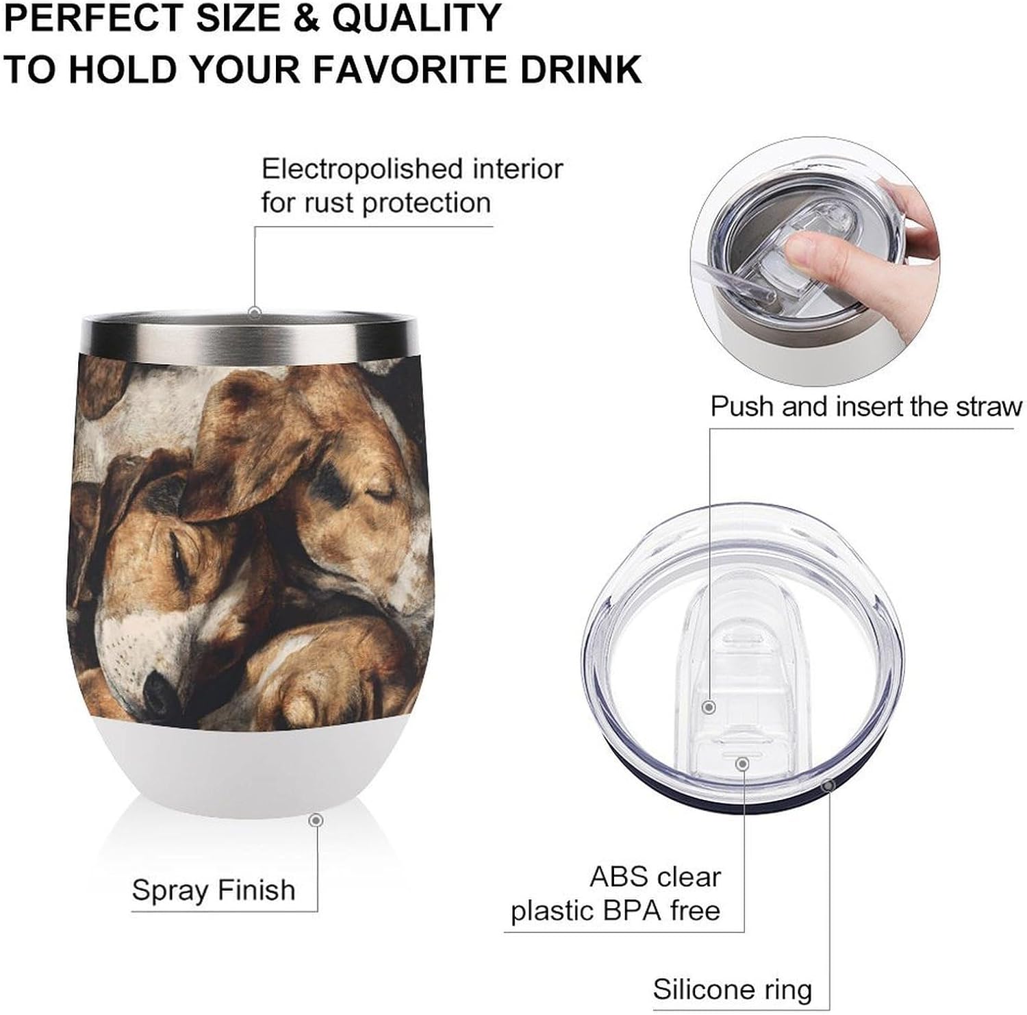 This 12oz insulated tumbler is made from stainless steel and features double-wall insulation to keep your drinks hot or cold longer, while the sturdy lid prevents spills. Its sleek design and secure lid make this cute cup ideal for coffee, wine, water, or other beverages, whether at home, office or travel. The mug is compact and easy to carry
