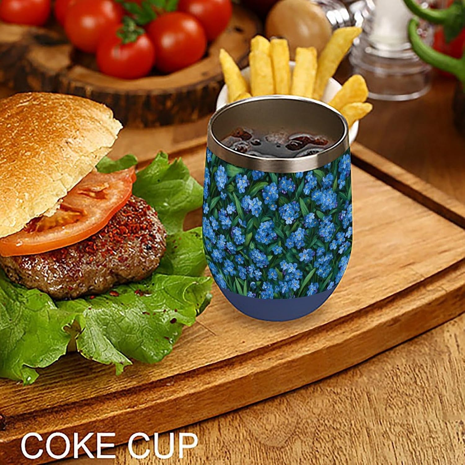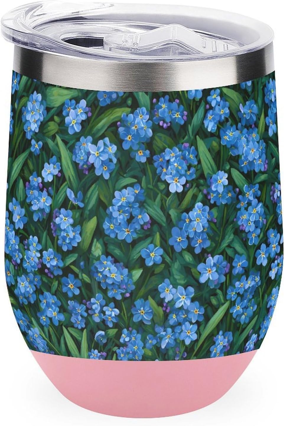 Floral Forget-Me-Nots Green Grass Insulated Drinking Cup Stainless Steel Coffee Mug Wine Tumbler with Lid 12OZ
