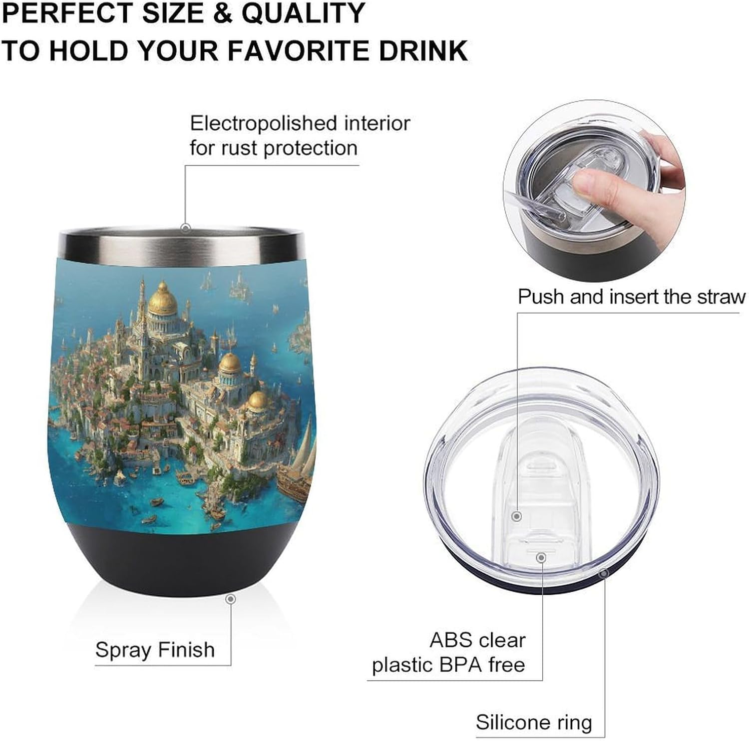 This 12oz insulated tumbler is made from stainless steel and features double-wall insulation to keep your drinks hot or cold longer, while the sturdy lid prevents spills. Its sleek design and secure lid make this cute cup ideal for coffee, wine, water, or other beverages, whether at home, office or travel. The mug is compact and easy to carry