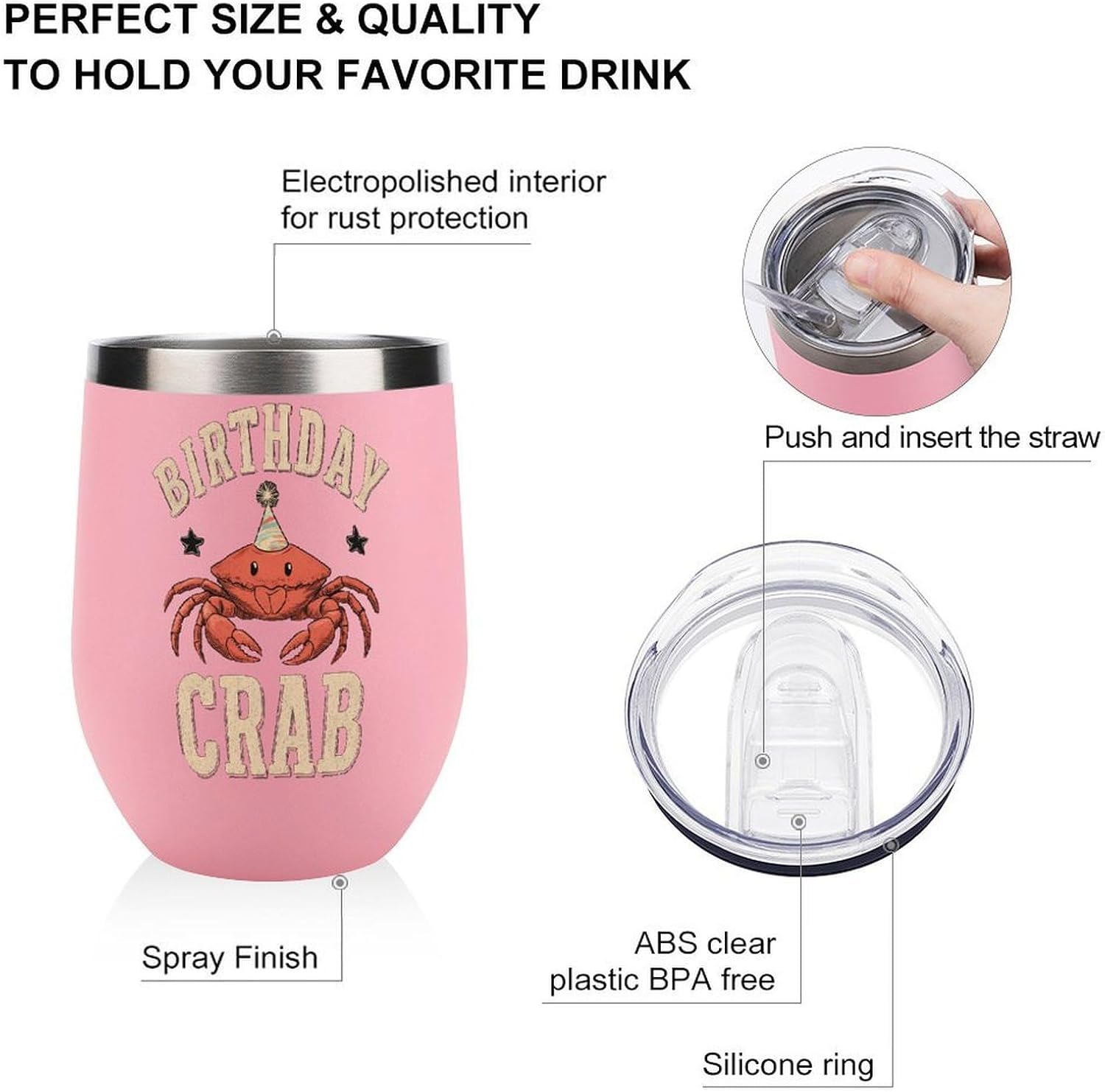 This 12oz insulated tumbler is made from stainless steel and features double-wall insulation to keep your drinks hot or cold longer, while the sturdy lid prevents spills. Its sleek design and secure lid make this cute cup ideal for coffee, wine, water, or other beverages, whether at home, office or travel. The mug is compact and easy to carry