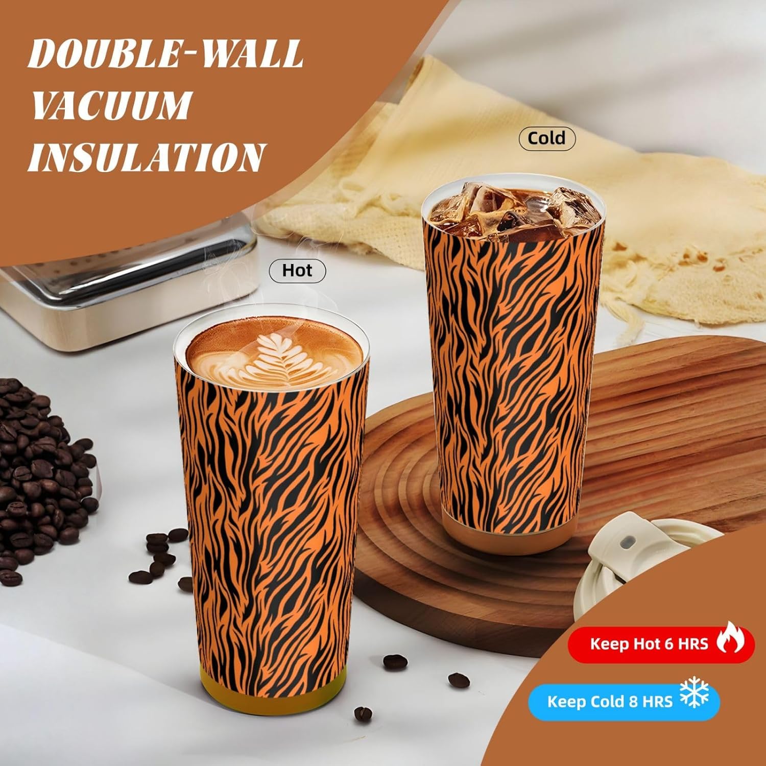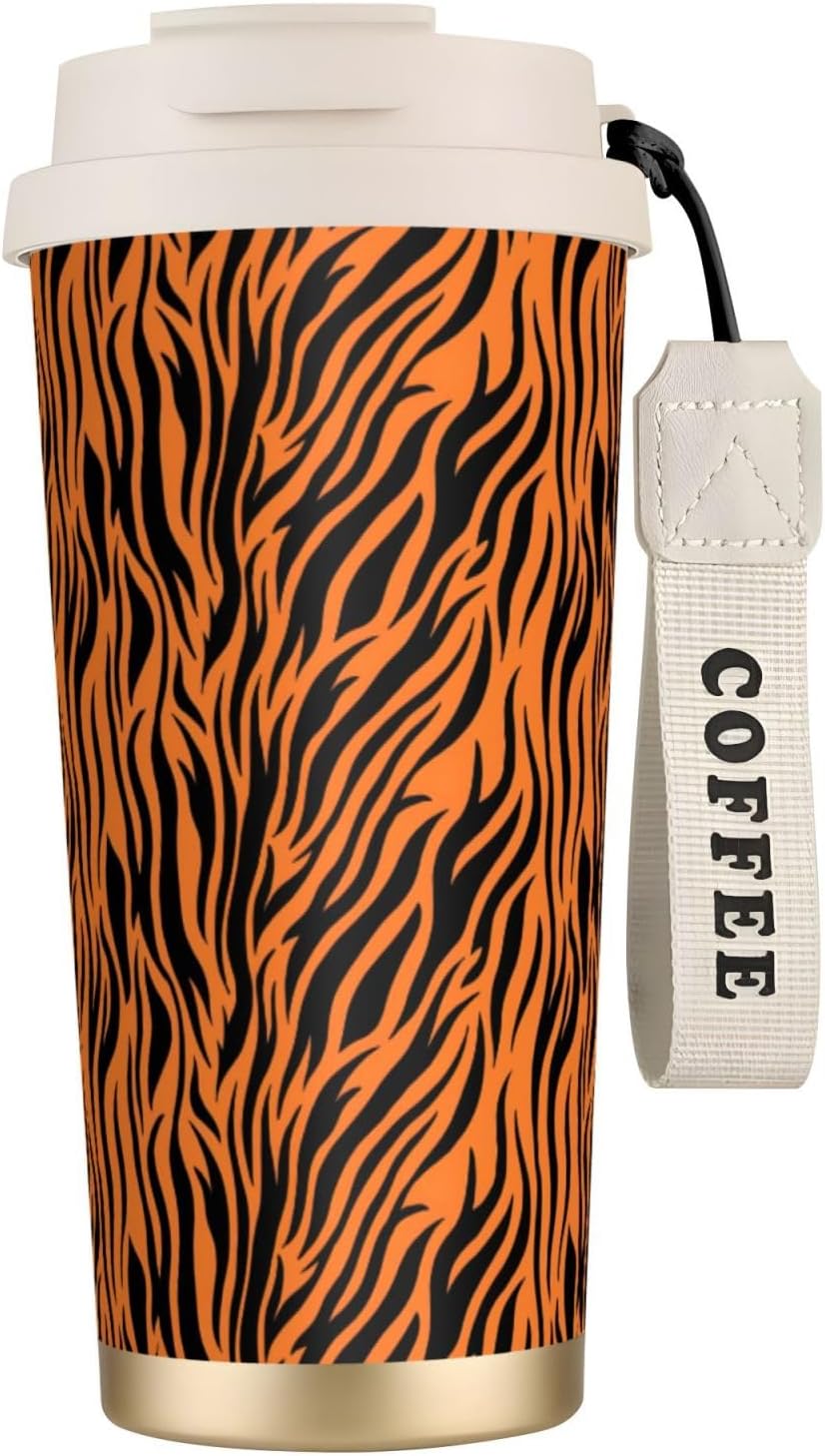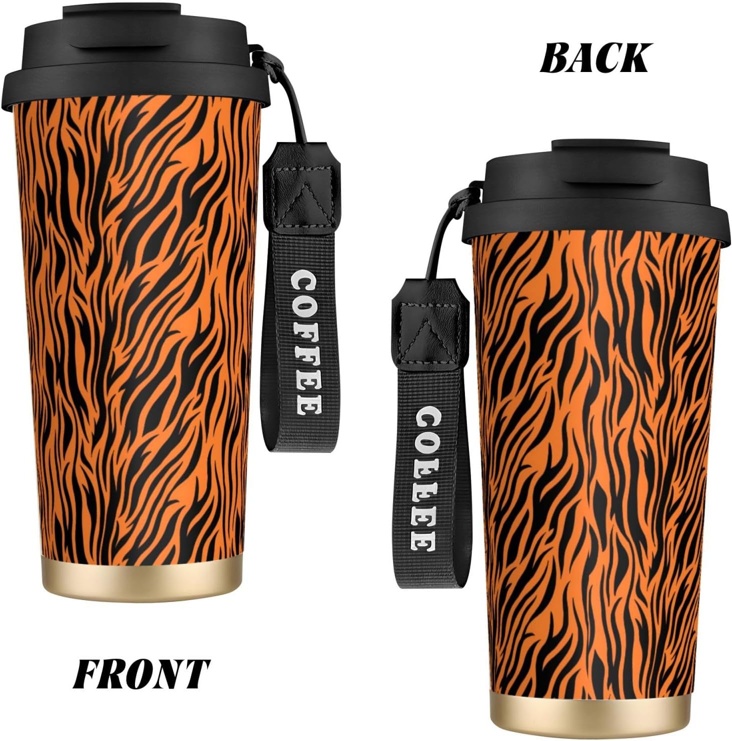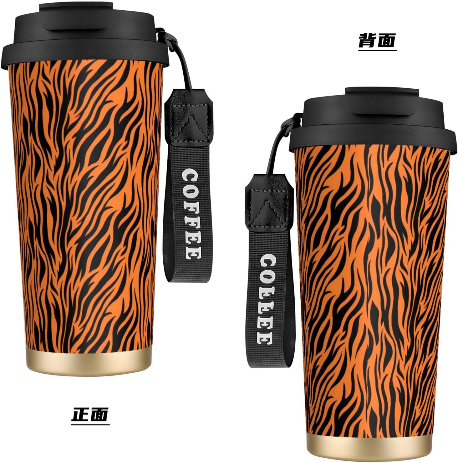 This Tiger Stripes Orange Pattern Print travel Coffee Mug supports three drinking modes: the direct drink spout for quick drinks during commutes, the straw port for iced coffee and other spill prone beverages, and the open top design that replicates the traditional coffee cup experience. BPA Free 316 Stainless Steel, Safe and Durable Inner liner made of food grade 316 stainless steel, non toxic, odorless, BPA free, safe for long term use.