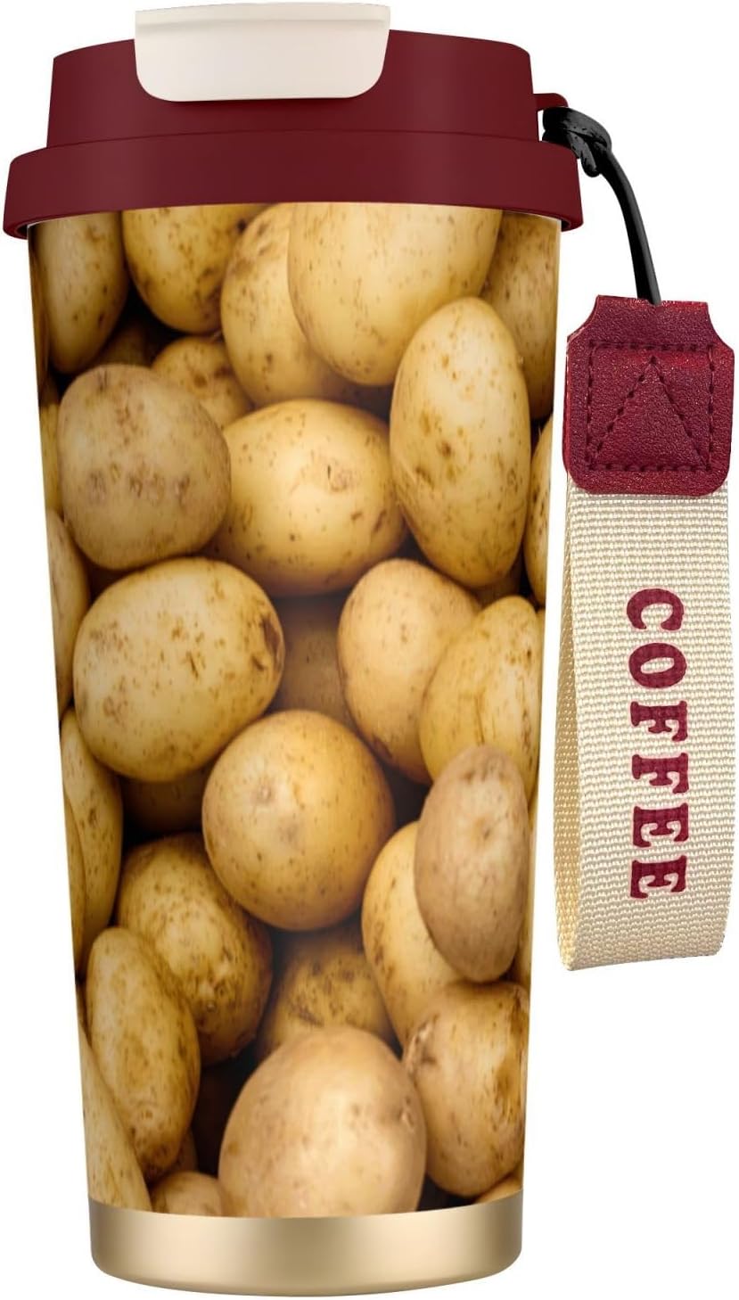 This Garden Potatoes Print travel Coffee Mug supports three drinking modes: the direct drink spout for quick drinks during commutes, the straw port for iced coffee and other spill prone beverages, and the open top design that replicates the traditional coffee cup experience. BPA Free 316 Stainless Steel, Safe and Durable Inner liner made of food grade 316 stainless steel, non toxic, odorless, BPA free, safe for long term use.