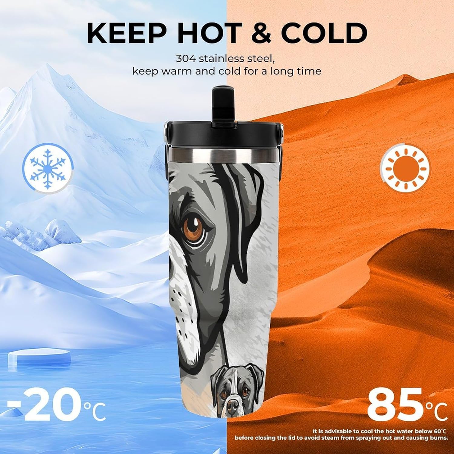 Our American Bulldog Head travel water bottle is made of food-grade stainless steel. The wide mouth design makes it easy to clean and add ice, and the powder-coated exterior is non-slip and durable, ensuring driving safety.Whether you prefer sipping or quenching your thirst, this personalized insulated mug has you covered. Featuring a splash-proof straw design, a sealing ring securely holds the reusable straw, and a drinking spout and full-coverage lid for enhanced leak-proof performance, this mug allows you to easily carry ice water to work, meetings, the gym, or on trips.You can give it to your friends and family as a birthday, Mother's Day, Father's Day, New Year's, Thanksgiving, and holiday gift. It's a thoughtful present.