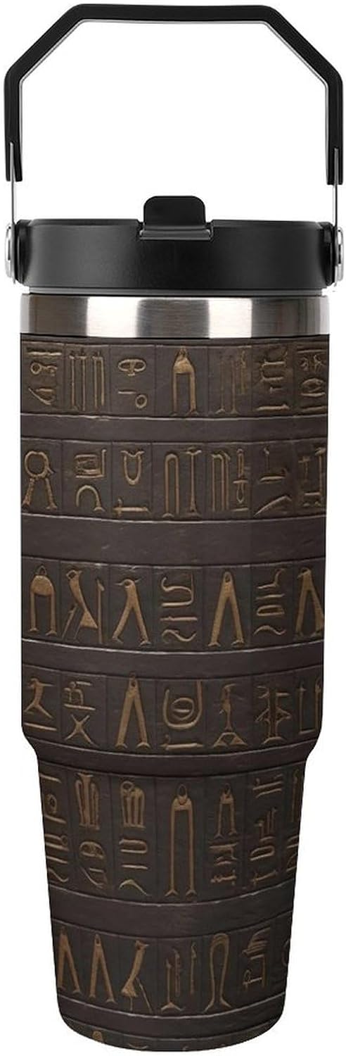 Our Ancient Egyptian Hieroglyph travel water bottle is made of food-grade stainless steel. The wide mouth design makes it easy to clean and add ice, and the powder-coated exterior is non-slip and durable, ensuring driving safety.Whether you prefer sipping or quenching your thirst, this personalized insulated mug has you covered. Featuring a splash-proof straw design, a sealing ring securely holds the reusable straw, and a drinking spout and full-coverage lid for enhanced leak-proof performance, this mug allows you to easily carry ice water to work, meetings, the gym, or on trips.You can give it to your friends and family as a birthday, Mother's Day, Father's Day, New Year's, Thanksgiving, and holiday gift. It's a thoughtful present.