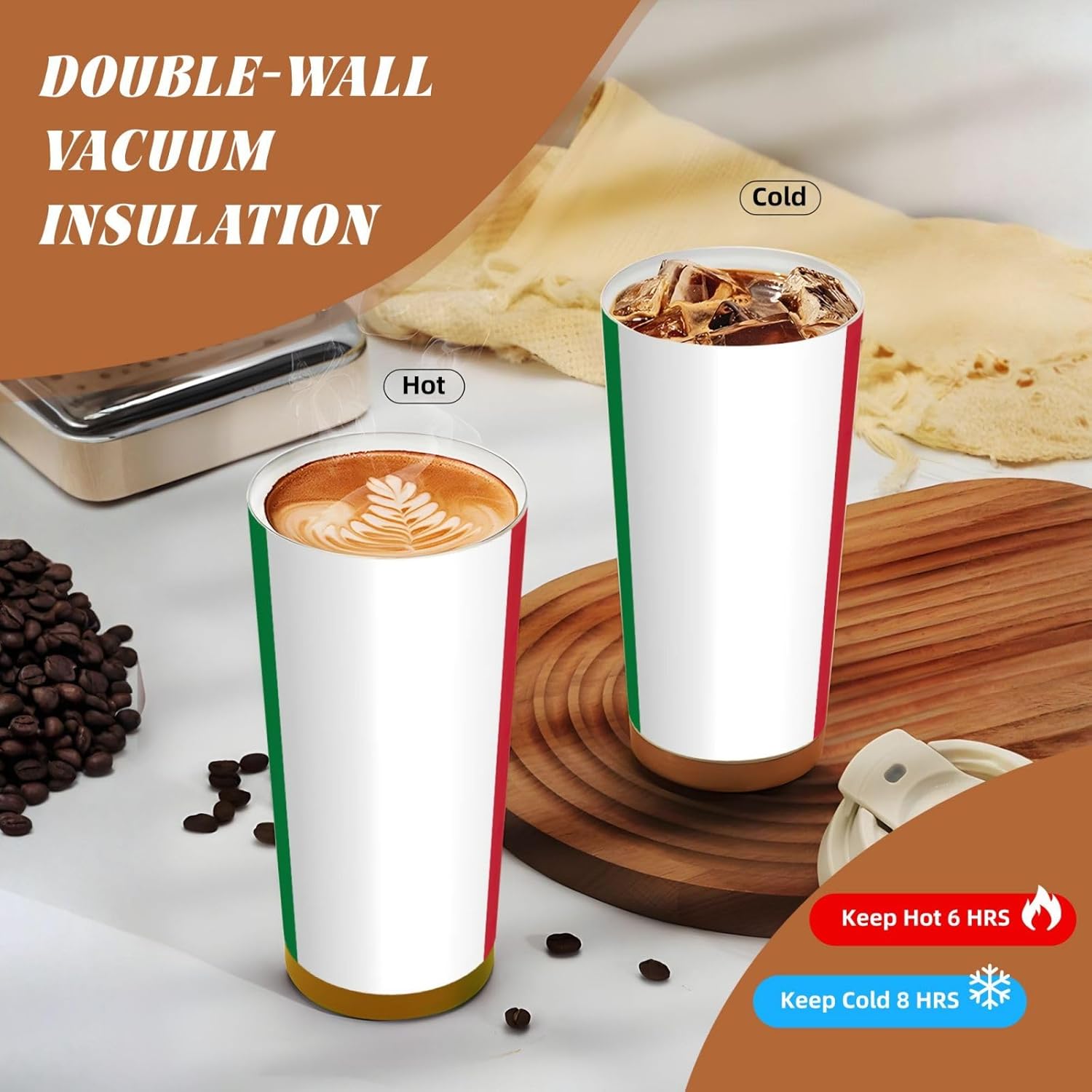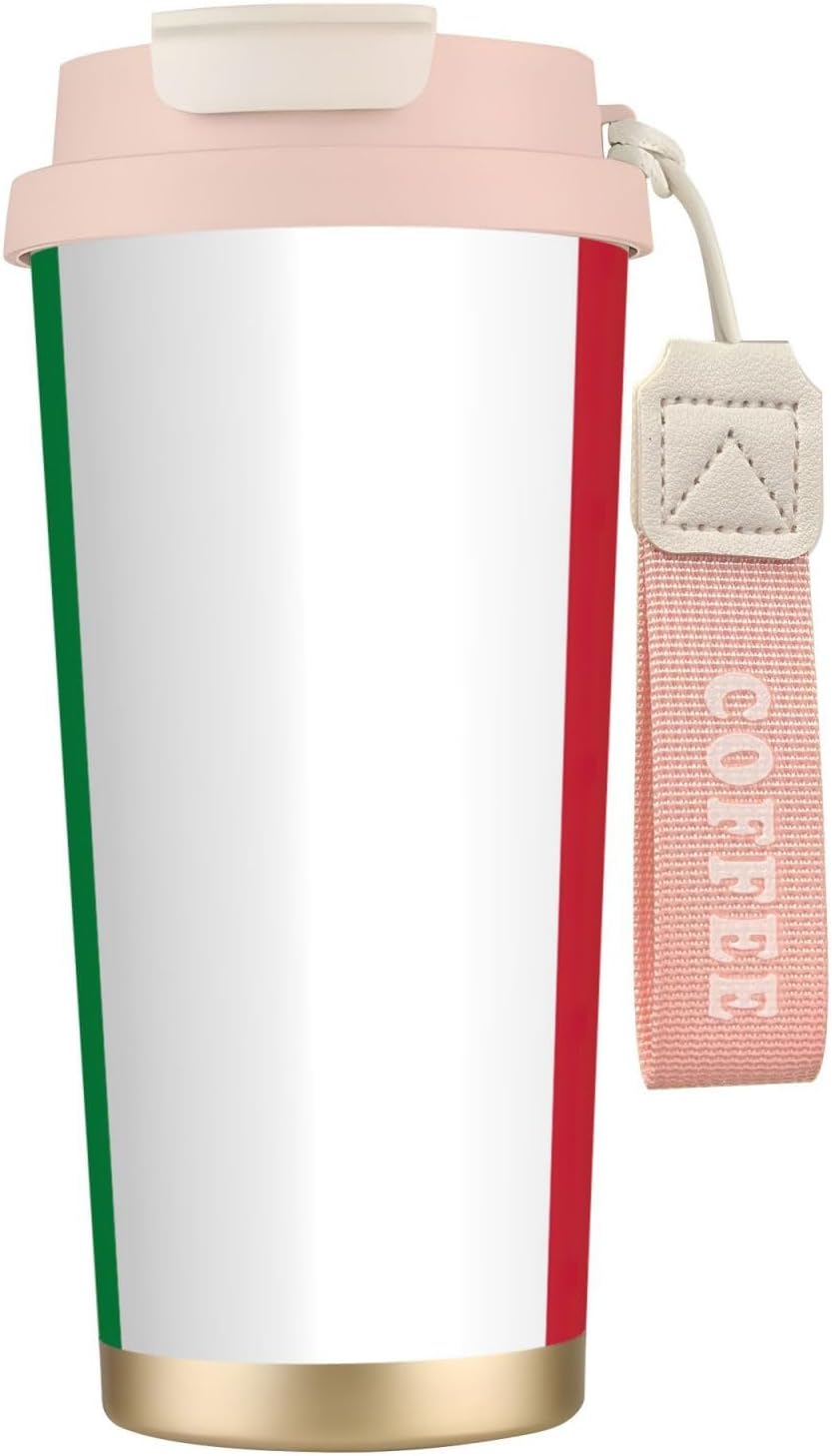 This Italian flag Print travel Coffee Mug supports three drinking modes: the direct drink spout for quick drinks during commutes, the straw port for iced coffee and other spill prone beverages, and the open top design that replicates the traditional coffee cup experience. BPA Free 316 Stainless Steel, Safe and Durable Inner liner made of food grade 316 stainless steel, non toxic, odorless, BPA free, safe for long term use.