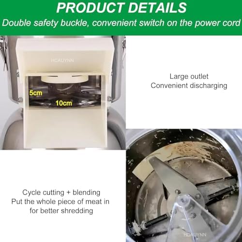 Streamline your meal preparation with our innovative automatic chicken shredding tool, designed to enhance efficiency and save you valuable time in the kitchen. This powerful device quickly shreds large quantities of chicken breast, making it an essential addition for busy home cooks, family gatherings, or small restaurants. Say goodbye to the tedious task of manual shredding and focus on creating delicious meals for your loved ones. Equipped with sharp serrated teeth and a unique twisted structure, this electric shredder delivers quick and uniform results not just for chicken, but also for beef, making it versatile for a variety of dishes. Whether you're preparing chicken dumplings, chicken noodles, or hearty soups, this tool adapts to your culinary needs. Cleanup is a breeze with the detachable mixing shaft and food chamber, allowing for easy disassembly and quick rinsing after use. Its compact design helps save precious countertop space, making it a perfect fit for any kitchen environment. Specifications: - Material: Stainless steel + PP - Power: 180W - Mode: Electric - Voltage: 220V - Production efficiency: Up to 240 lb/h - Size: 26 x 26 x 37 cm - Weight: 6.4 kg - Applications: Ideal for chicken, beef, mixed vegetables, and more. Included in the package: - Chicken shredder x1 - Manual x1 Experience the convenience and efficiency of our automatic chicken shredding tool and elevate your cooking game. Enjoy effortless meal prep and spend more quality time with your family or guests.
