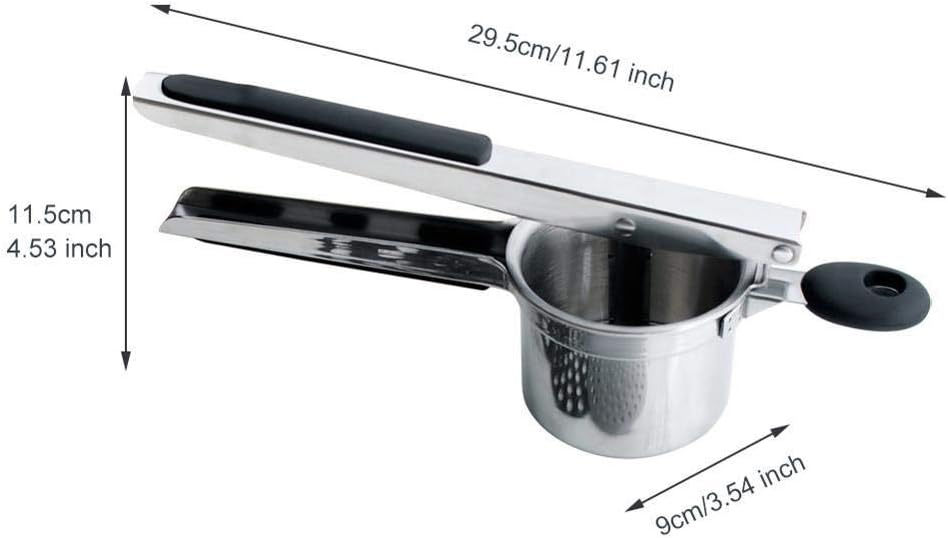 Product informationName: Potato pressure mudSize: Length 29.5* Width 9* Height 11.5cmMaterial: Food grade 430 stainless steel + siliconeNet weight: 550gPacking: color boxUses: garlic, cooked potatoes, pressed mud, lemon melon and fruit juiceEasy to Clean & Dishwasher Safe – Unlike traditional garlic crushers, this open-design garlic mincer tool prevents buildup and is dishwasher-safe for effortless cleaning.