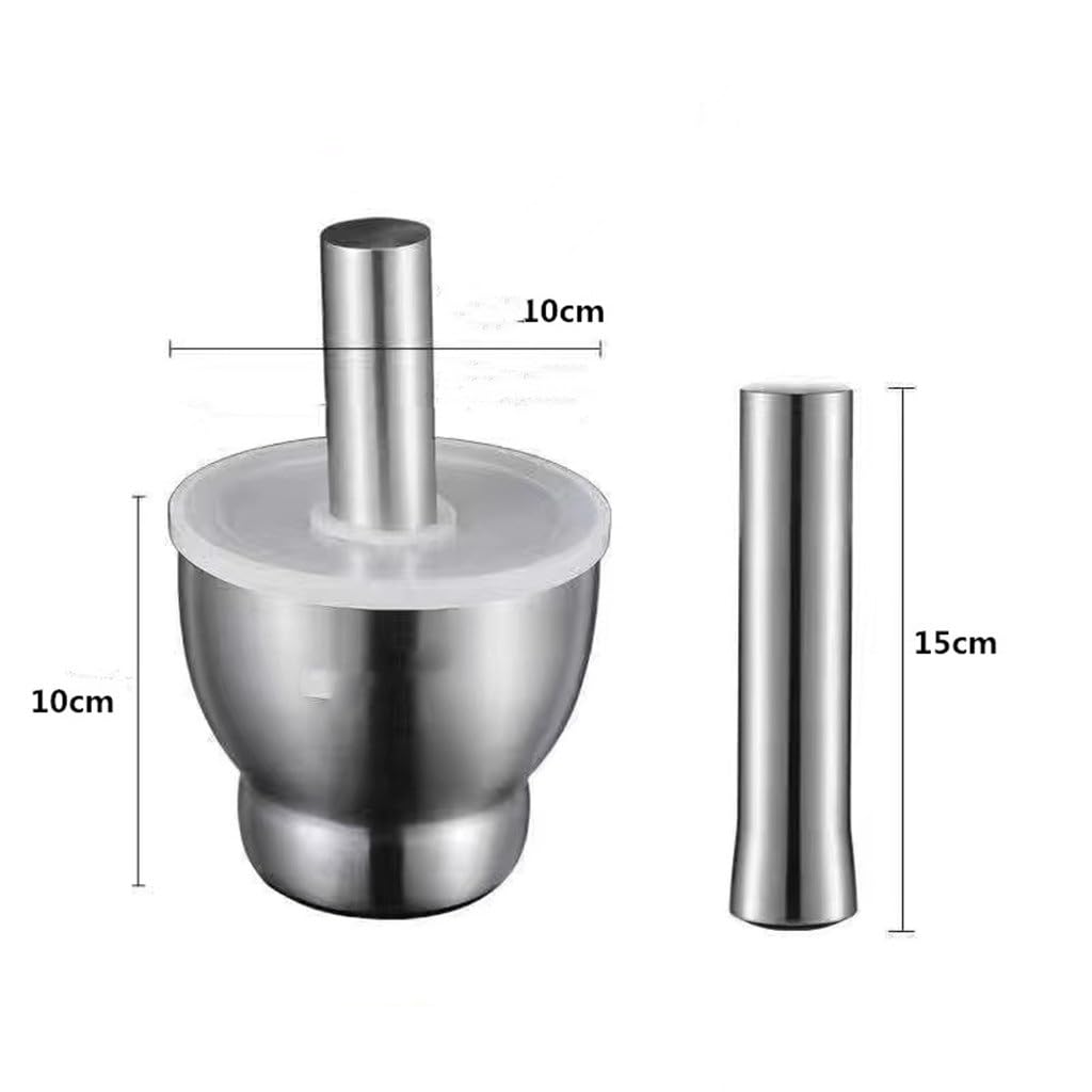 Professional kitchen garlic buckle pot bottom seat bowl mortar and pestle setUse a portable design and easy and safe useSolid garlic percussion stick, strong and , comfortable gripDeepened, thickened barrel body, which is comfortably handled and easily groundEasy to clean and does not cause the grinder to retain the original spice flavorMaterial: stainless steelDimensions: 8*10*6cmPackaging: 1 garlic processorCompact design takes up little space in your kitchen, and makes a great gift for new cooks to master chefs