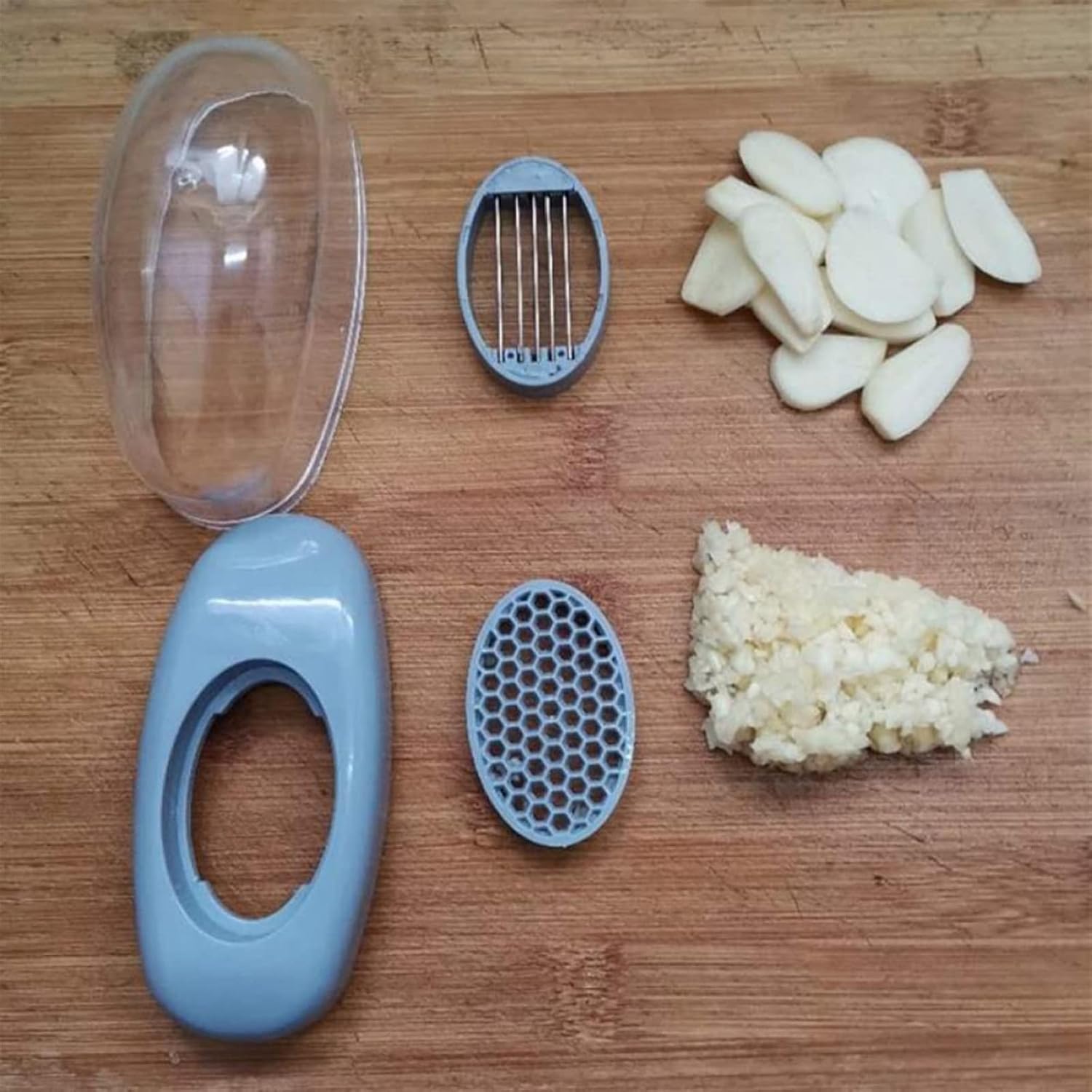 This manual garlic cutter is not only convenient for you to cutter garlic but also easy for you to smashing garlic. Detachable designed makes this plastic garlic cutter is easy for you to clean after using.