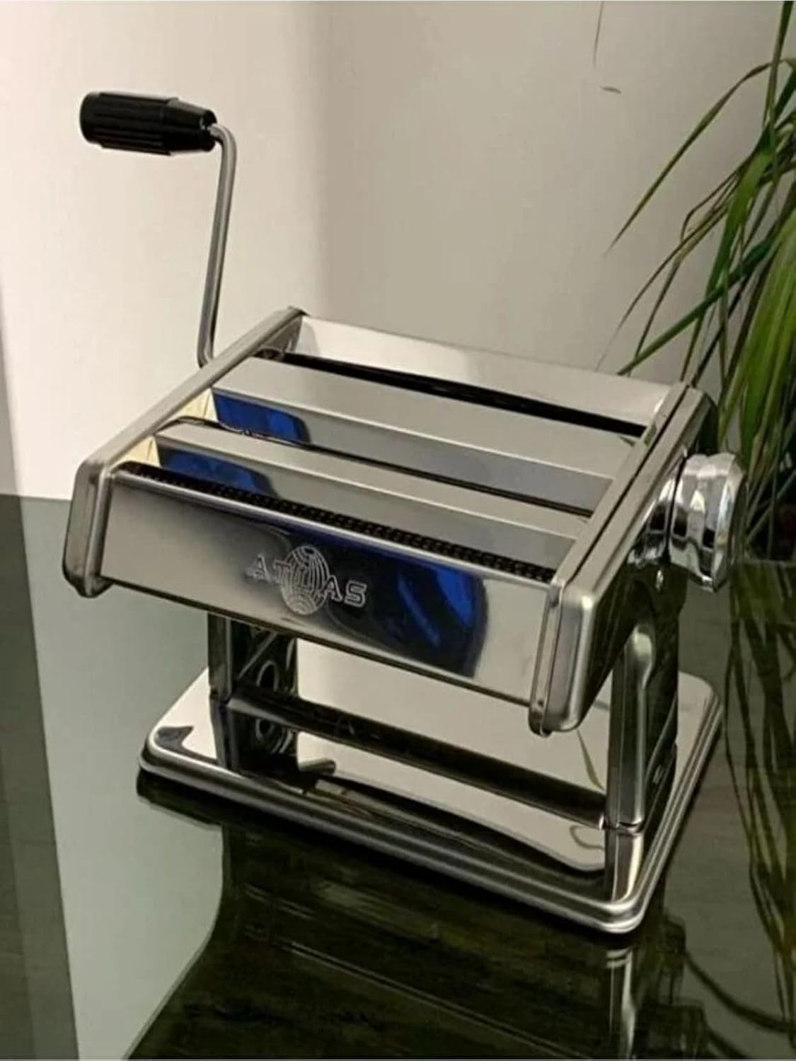 The Atlas Stainless Steel Manual Pasta Maker Machine brings authentic Italian pasta-making tradition right into your home kitchen. This versatile tool allows you to craft fresh, homemade pasta, dumplings, and ravioli with ease, transforming simple ingredients into restaurant-quality dishes. The durable stainless steel construction ensures longevity and reliable performance, while the manual crank operation gives you complete control over the pasta-making process. Featuring adjustable thickness settings through its precision dough roller, you can create pasta sheets from thick to paper-thin to suit any recipe. The included noodle cutter attachments let you produce various pasta shapes and widths, from delicate angel hair to hearty fettuccine. The sturdy clamp securely attaches the machine to your countertop for stable operation during use. Whether you're an experienced home chef or just beginning your culinary journey, this pasta maker makes it simple to enjoy the superior taste and texture of freshly made pasta whenever the craving strikes.