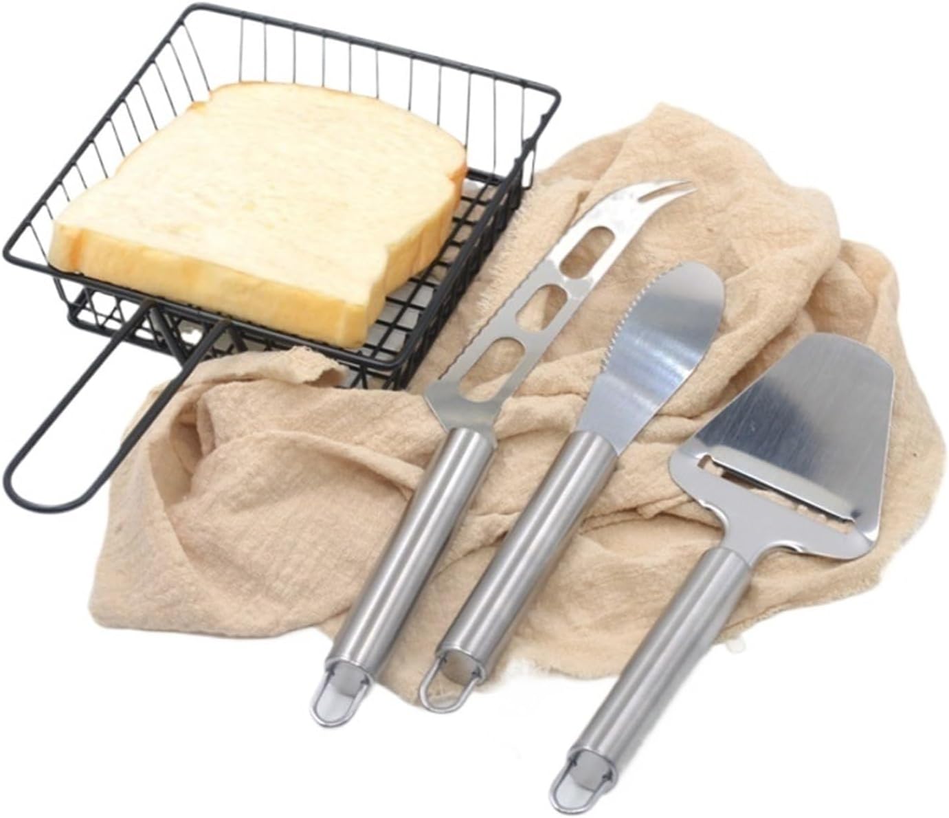 UtensilsProduct Category: Kitchen Gadget SetSpecifications: Cheese tool three-piece setMaterial: Stainless steelUses: Cutting cheeseUse scenario: Kitchen bakingFeatures: Multifunctional