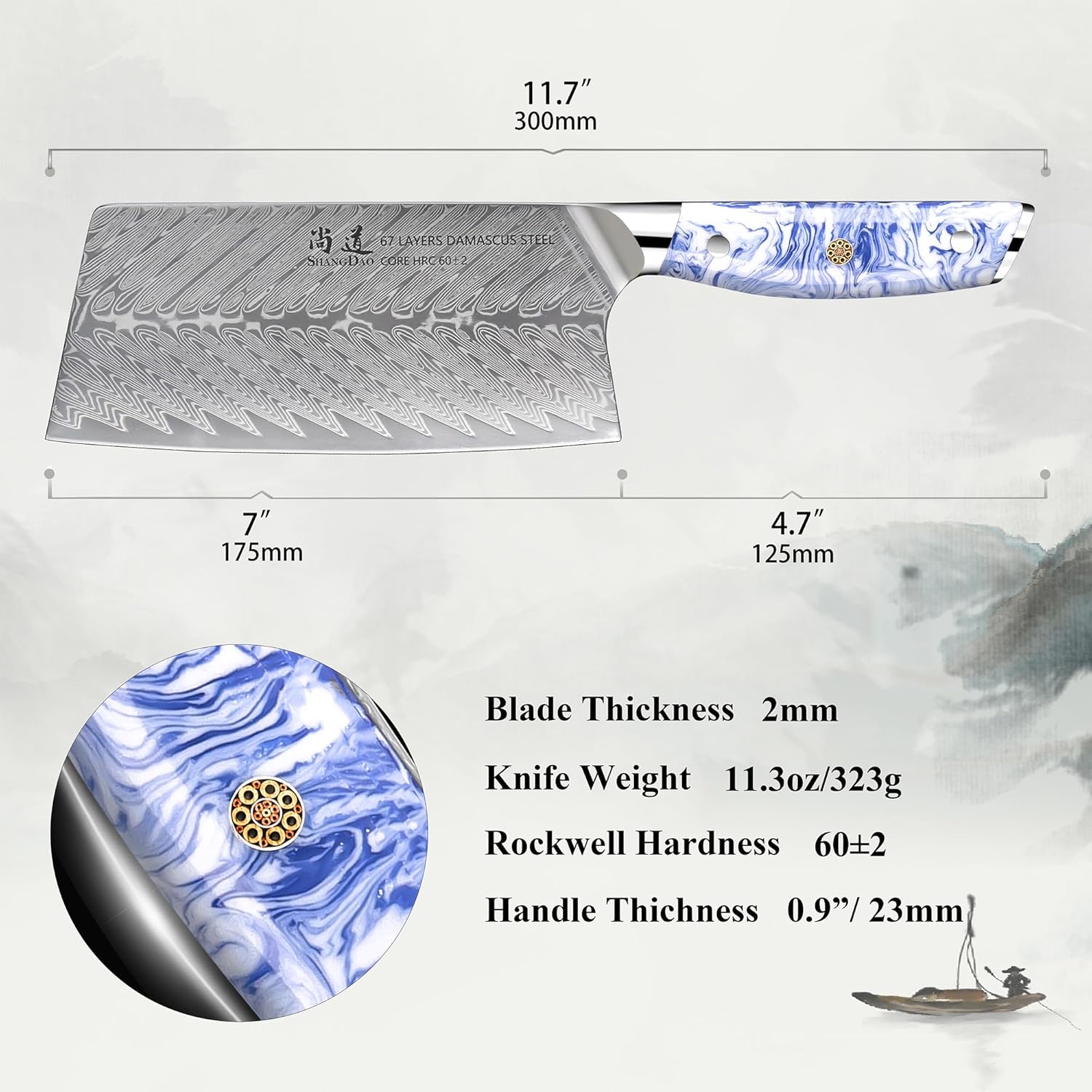 | Blade Color | Damascus steel herringbone pattern |