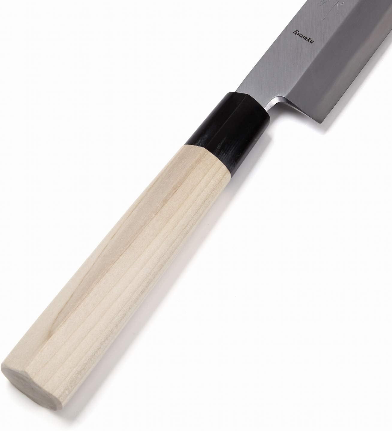 Syosaku Japan Sushi Sashimi Chef Knife Shiroko(White Steel)-No.2 D-Shape Magnolia Wood Handle, Yanagiba 13-inch (330mm)