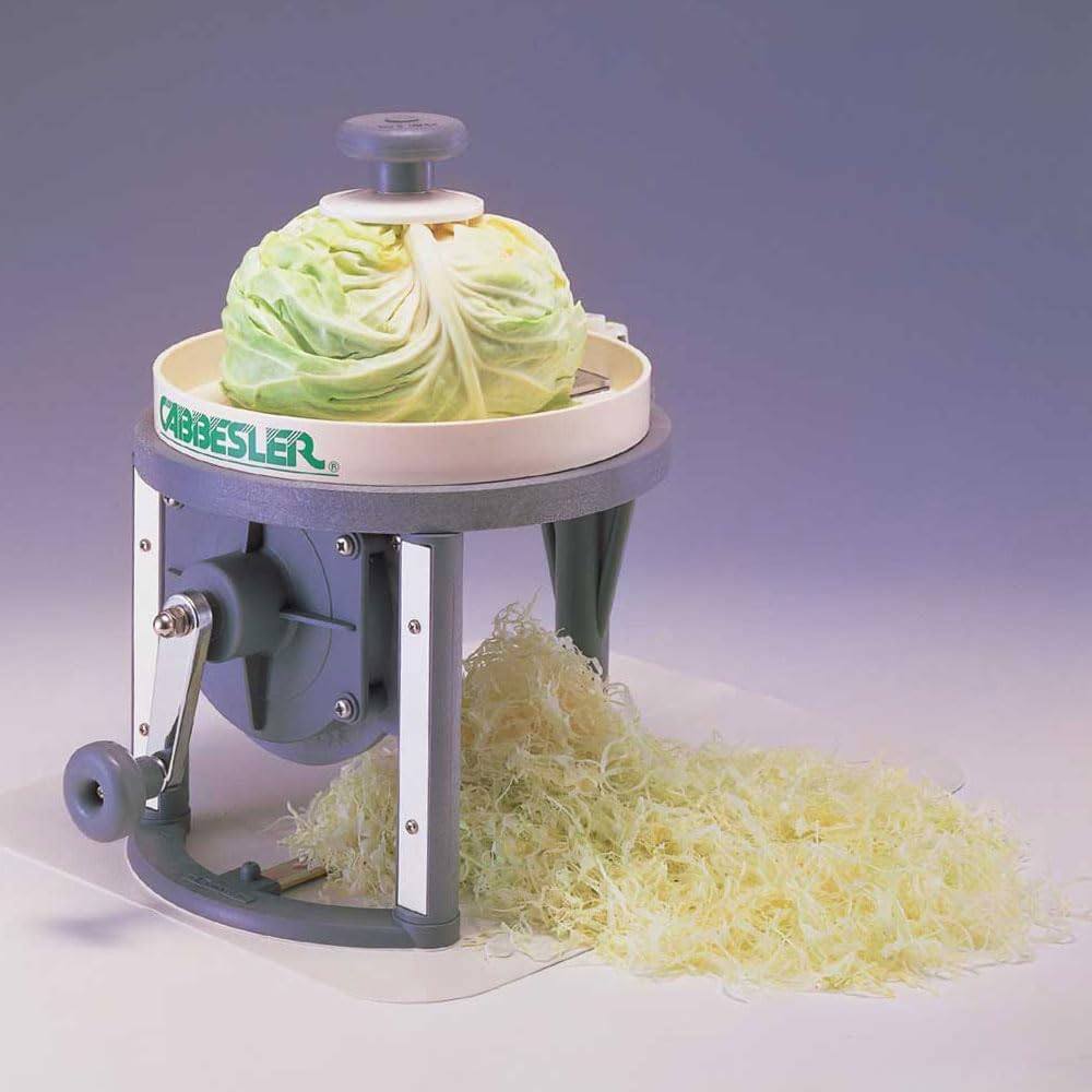 Wide design that can cut whole cavities up to 9.4 inches (24 cm) in diameter. Can cut cabbages up to 9.4 inches (240 cm). Cut the head of the cabbage with a little knife, insert the center shaft into the center of the cabbage and set it in the machine. Lightly press the top and turn the handle to make a julienne cabbage.