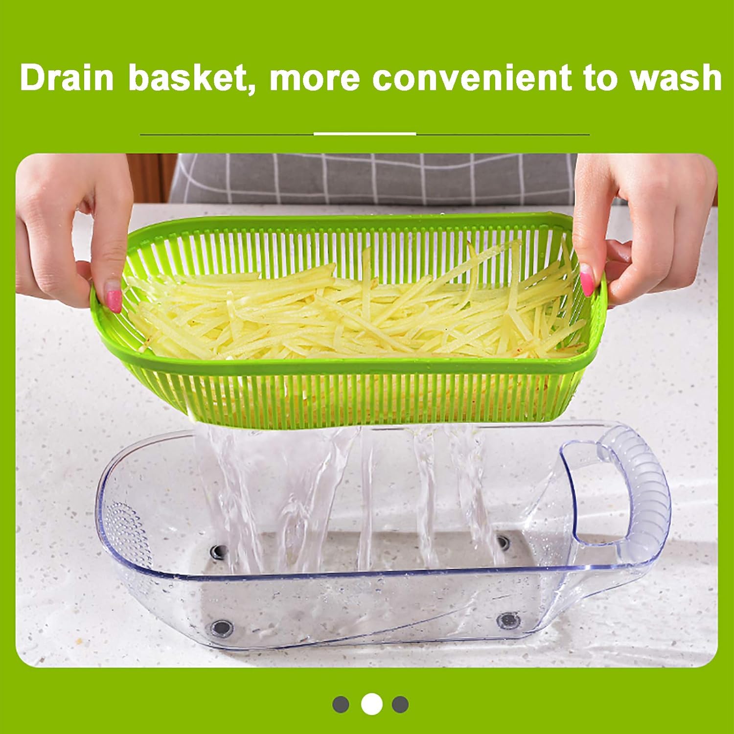 Suitable for cooking life start from using vegetable chopper. Food cutter is your good helper in kitchen. Multiple blades 8 blades for your choice, make the fruit and veggie chop new tricks. Make Your Taste Buds Move And Dance. Super quality and safety. From product materials to finishing products, BPA-free, food grade, hardened ABS plastic and stainless steel, for confidently. Compact and large capacity. Compact Appearance for Sparing Space, Containing Much Food Easy to clean. After Cutting Vegetables And Fruits,It is recommended That You Clean The Knives With Tap Water.Please Take Care When Clean The Blades. Note: ! - When shredding food, be sure to use a hand guard to fix it. ! - For Hard Skin Vegetables/Fruit, Peel Off It First. ! - Do not let it immerse in water for a long time, please cut it in clean food. Package includes: 1 x Vegetable Cutter 8 x Blade 1 x Handguard 1 x Cleaning Brush 1 x Drain Basket If you have any questions, please feel free to contact your contacts