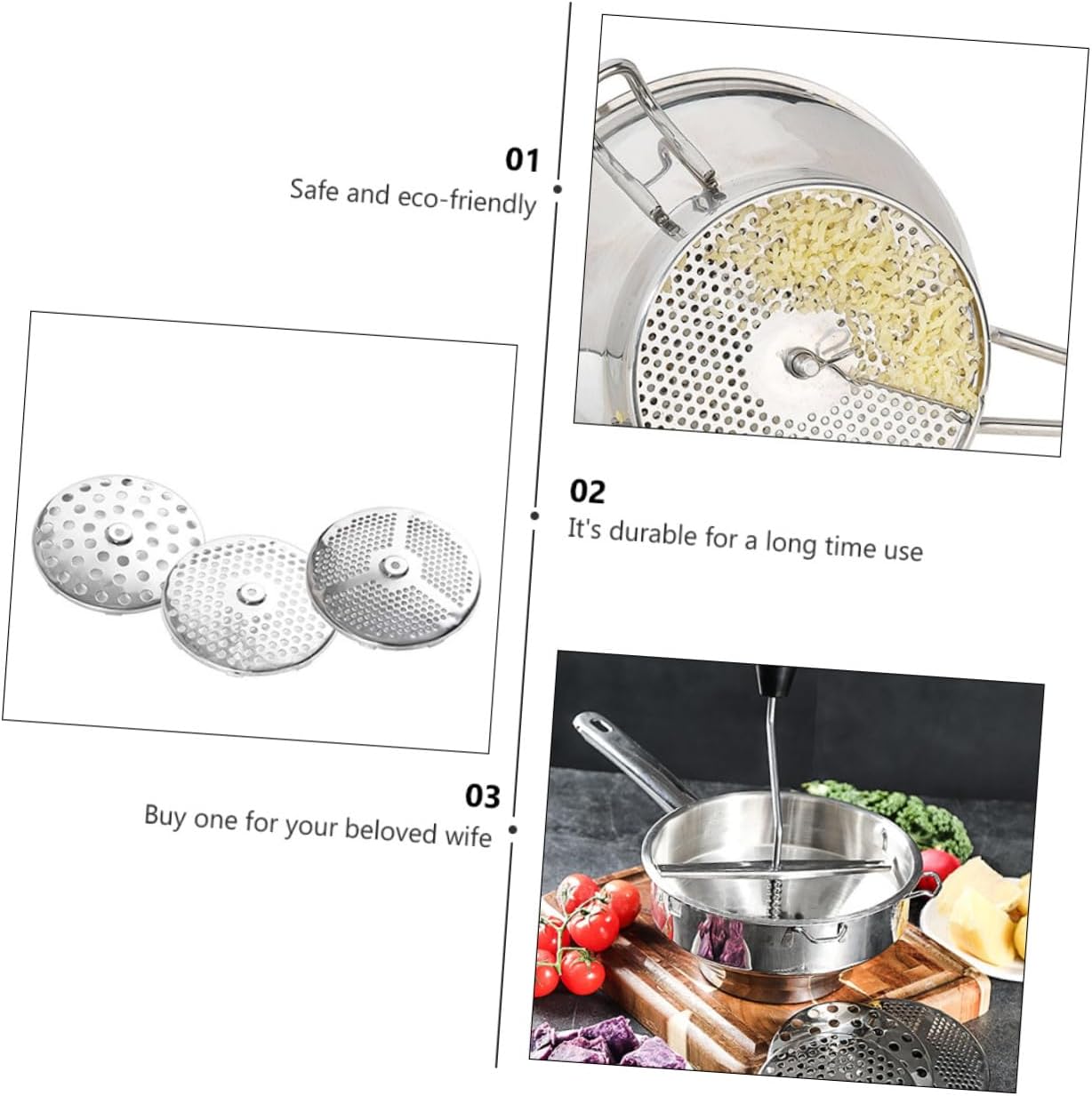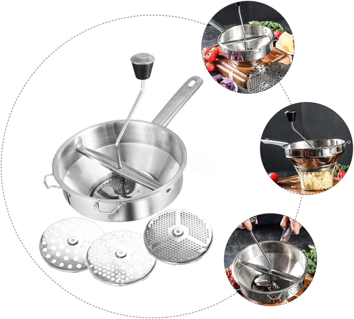 Package Include 1 x stainless steel stirrer Characteristics -Size: 35x20x9.5cm/13.76x7.86x3 fruit mill. -Material: Stainless steel manual masher -Color: Silver -This is a professional-grade model stainless steel food blender. -The is perfectly polished without scraping hands kit. -Crafted of stainless steel, disassembles for cleaning fruit and vegetable -Easy installation, very simple way to use it kitchen utensil sets. -This food blender or mixer its place in a well-equipped kitchen manual blender.Goods Informationhand tools This food blender or mixer its place in a well-equipped kitchen. foods Crafted of stainless steel, disassembles for cleaning.food mixer This is a professional-grade model