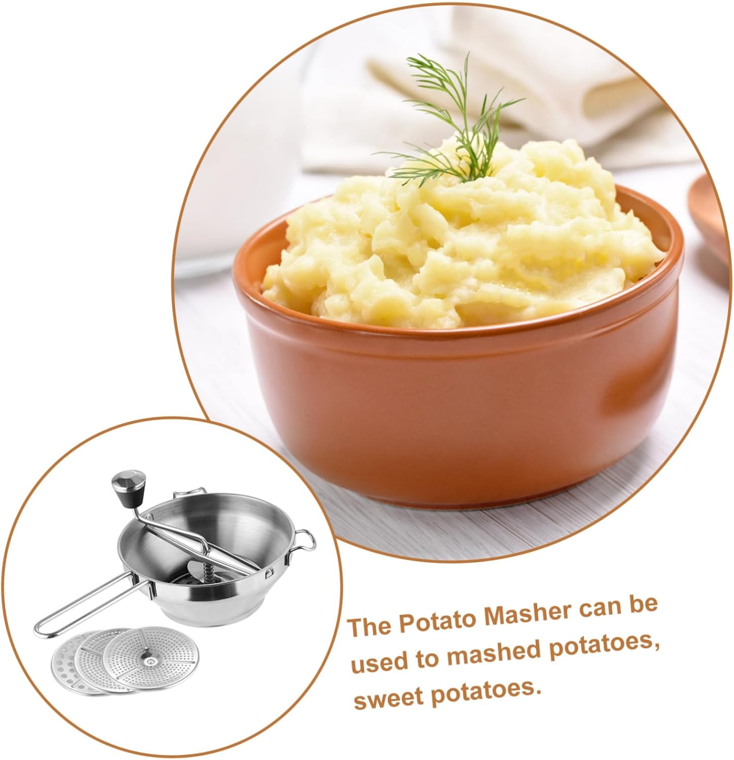 Package Include 1 x Set of Potato Ricer Features -Material:Stainless Steel smasher kitchen tool -Product Info:Food mixer -Size:33.00X19.00X8.00cm/12.97X7.47X3.14in masher heavy duty potato -Color:Silver heavy duty masher -Great for chopping boiled potatoes, carrots, tomatoes, beans, fruits like bananas potato smasher kitchen tool. -Its comfortable grip is easy to hold requiring less effort to get the jobs done potato masher kitchen. -The large pressing surface and a solid handle make the potato pressing quite easy with light pressure without much effort mashed potatoes masher. -Thickened pressure plate, fine mesh, faster mud output and more delicate mud pressure potato ricers. -Made of premium food-grade material, safe and healthy, you can use it confidently stainless steel potato masher.Goods Informationheavy duty masher Perfect for mashing sweet potatoes, white potatoes, tomatoes, other vegetables and fruits a breeze.potato ricer Ideal for potatoes, berries, and tomatoes for a more complete mash, macerate, or crush.stainless steel potato ricer This Potato Masher, made of premium stainless steel materials, very easy to use.potato crusher A good helper in your kitchen.metal potato masher The handle is non-slip, smooth, safe to use