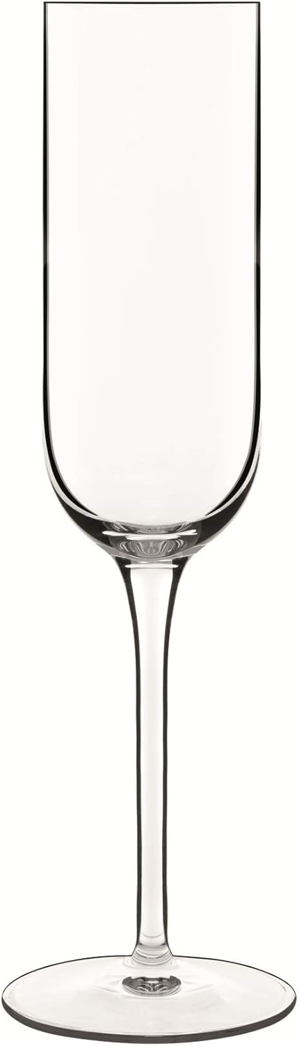 The Sublime Champagne Flute glasses are made in Italy of SON.hyx Break Resistant Glass. Luigi Bormioli's proprietary SON.hyx glassware formula represents an exciting fusion of elegance and technology. These elegant yet contemporary machine blown glasses have laser cut rims, ideal weight, and maintain their clarity for up to 4000 industrial dishwashing cycles. These lead free glasses also feature a beautifully drawn stem reinforced with titanium via nanotechnologies. The Flute is 7-ounces in capacity and is 9 -1/4" tall. .