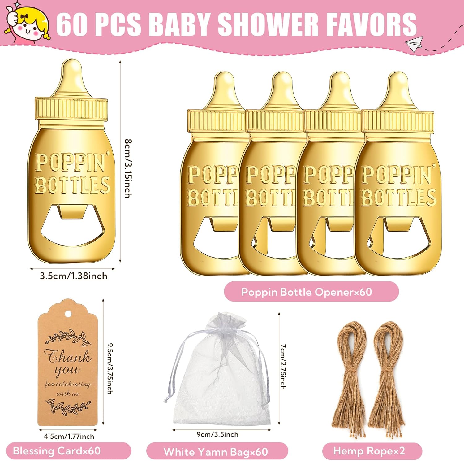 | Included Components | 60Pcs bottle openers+60Pcs Blessing Gift Tags+60 White silk bags |