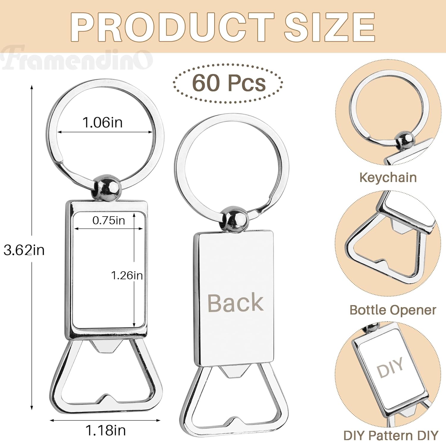 | Included Components | [60 pcs sublimation blanks keychains with bottle opener] |