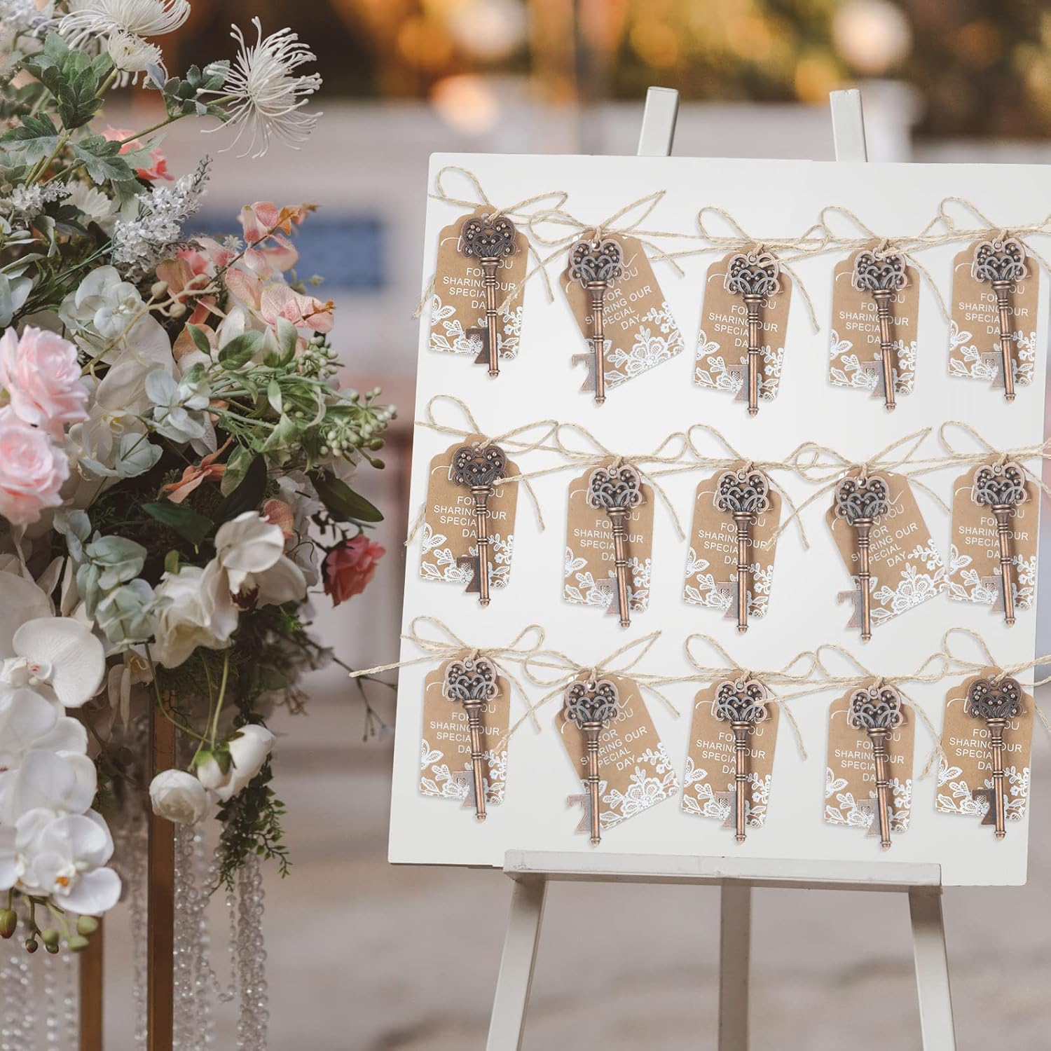 Features: These bottle opener wedding favors can be served as DIY party favors, you can use it to hold sweets, chocolates, or any other items you like, noticeable and eye catching, which will be ideal souvenirs for your guests. You can send our key bottle opener wedding favor with tag as an ideal gift to your friends, colleagues, neighbors, and more, and they will be pleased to receive them. Specifications: Material: kraft paper, alloy Color: as pictures shown Size: Candy box: about 9 x 6 x 2.5 cm/ 3.54 x 2.36 x 0.98 inches Vintage key tag: about 4 x 7 cm/ 1.57 x 2.76 inches Key bottle opener: about 7.6 x 2.7 cm/ 2.99 x 1.06 inches Package includes: 100 x Candy box 100 x Vintage key tag 100 x Key bottle opener Notes: Manual measurement, please allow slight errors on size. The color may exist a slight difference due to different screen displays.