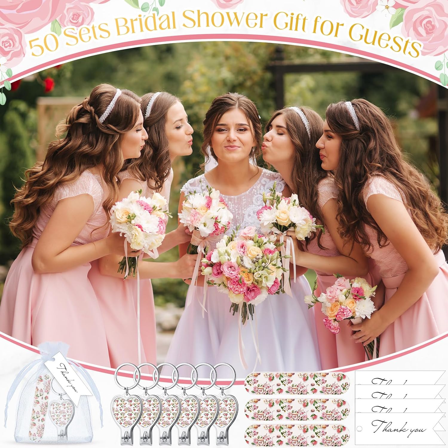 Features: From the romantic patterns and words on the bottle opener, to the delicate and unique design style on the card, to the pure white and holy yarn bag, every element of our wedding thank you gifts features heart-warming details and romantic designs, which can give your guests a sense of happiness, fulfillment and pleasure The wedding party gift set can fully express your blessings, with a blank design on the back of the card. You can stick stickers on the card or write down what you want to say to friends and guests. These gift bags can accommodate small candies, chocolates, and other gifts, and customers who receive DIY gifts will definitely feel your warmth. Specifications: Material: Bottle Opener Keychains: stainless steel Card: 250g coated paper Color: mainly pink Size: Bottle opener approximately 3.54 x 1.18 inches/ 9 x 3 cm Nail file is 3.5 x 0.75 inches/ 8.9 x 1.9 cm in size Thank you card about 2.76 x 0.98 inches/ 7 x 2.5 cm White organize bag is about 3.94 x 4.72 inches/ 10 x 12 cm Package includes: 50 x Bottle opener 50 x Nail file 50 x Thank you card 50 x White organize bag Notes: Manual measurement, please allow slight errors on size. The color may exist a slight difference due to different screen displays.