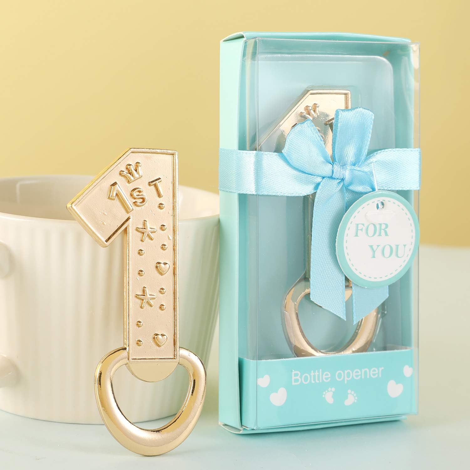 We have 2 colors for you,it is perfect for your baby first party decoration and each bottle opener is individually packaged in a chic box,your guest will love it. Do you want to prepare an eye-catching and unforgettable baby birthday party for your little boy or girl? These beautiful party favors add a great touch to your party and will leave a lasting impression with your guests! Looking for a festive way to crack open a cool beverage and celebrate your big day ? Look no further than our My 1st Birthday Bottle Opener. Made from durable gold-tone metal, It looks awesome, must have impressed your party.These unique bottle openers are sure to be a hit with guests and a favor favorite. Your baby's first birthday must be a big day for you and your baby, so we want to make this very important day is different, impressive,Your friends and family will be surprised because of the so elaborate gifts. Specifications: Product name:kids birthday party or wedding annniversary party favor and decor Material: Metal alloy Package box size: 4.7*2.5*1 inch Bottle opener color: Golden Package box color: Blue Occasion: baby birthday party, wedding, anniversary,1st birthday party decor Package Included: 24 x bottle opener Each bottle opener is individually packaged in a chic box 100% no risk to purchase our products, if you have more needs for baby shower gifts, you can click me on-line store or please feel free to contact us 1