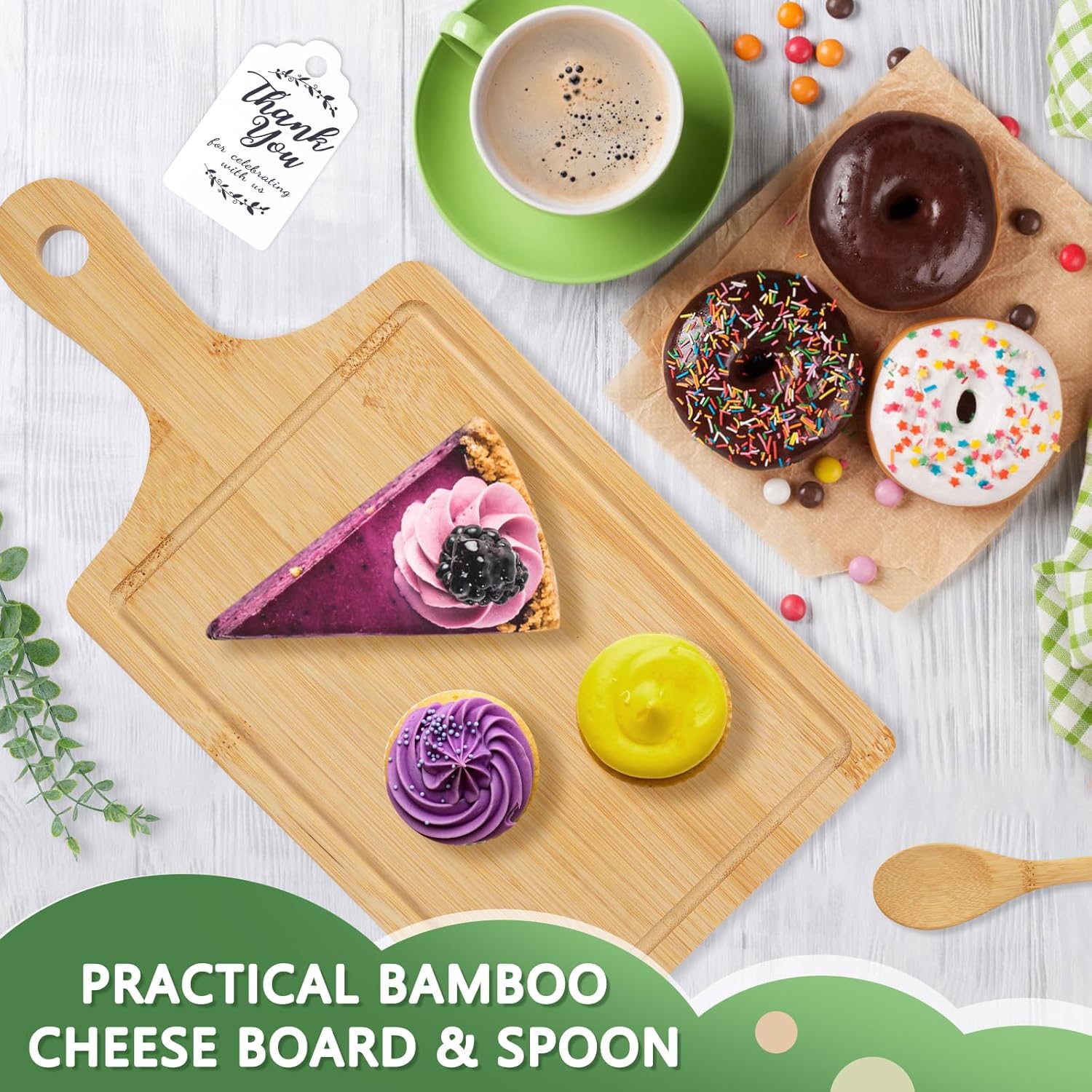 | Included Components | Bottle Opener, Bamboo Cheese Board, Bamboo Spoon, Artificial Eucalyptus Stems, Thank You Card and Gift Bags |
