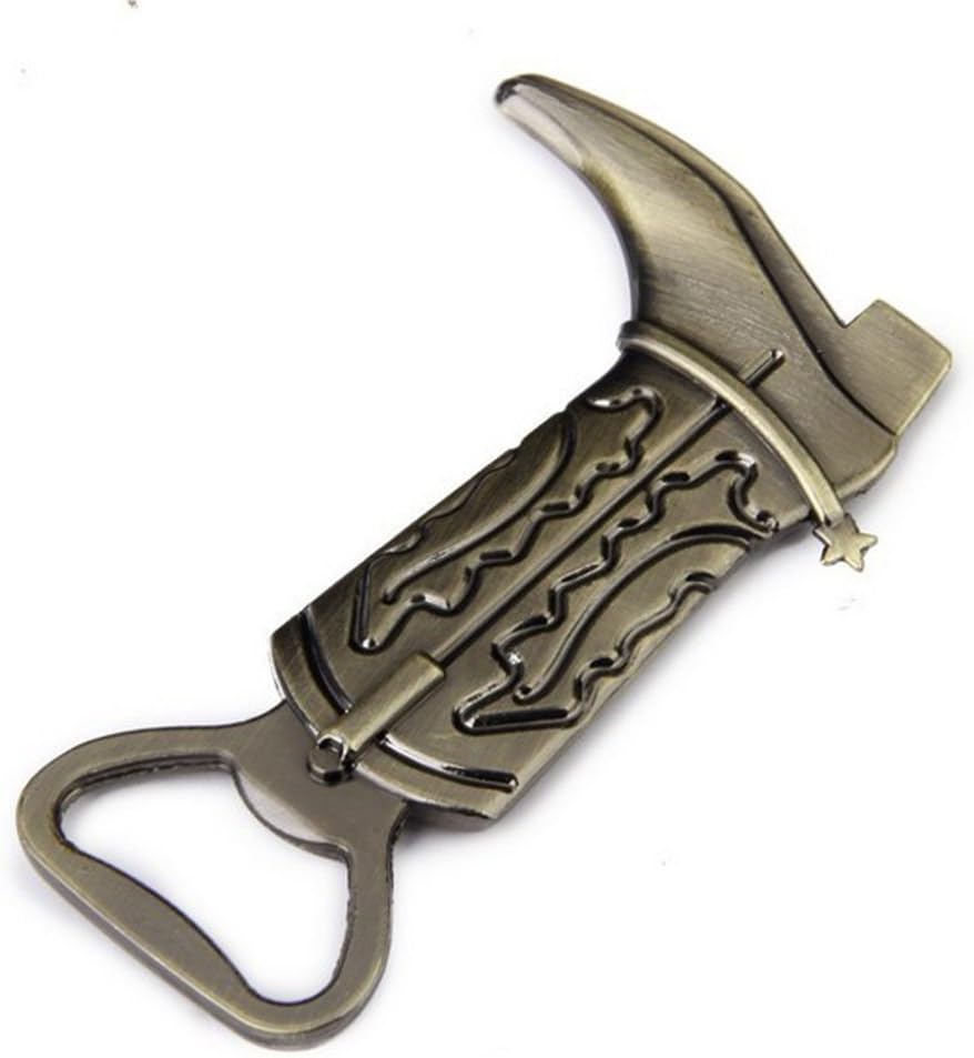Bronze Cowboy Boot shape, best gift for your wedding Favor. This Cute Cowboy Boot bottle opener with beautiful vintage look suit any vintage,rustic or classic party or somewhere in between. This is great choice to open champagne in Celebration meeting. It's a useful tool as a bottle opener and it's a creative gift for all your guest full-loading your thanks and love. Apply to a variety of party,Camping,Hiking,Mountaineer,and other activities. It is distinctive and practical that everyone would like it,and it is a perfect gift for the one you care about. Package Include 24 pcs Cowboy Boot bottle opener with escort tag card. Each Cowboy Boot Bottle Openers Weight: 48.6 g Material:Metal alloy Color:Golden Bottle Opener Dimension:Size:3.5*2.0*0.1 inch; FEATURES : 100% brand new and high quality Pocket size,easy to storage and take with Easily open your beer and soda bottles Funny and Stylish look design Material: high quality durble Metal Makes a unique gift and stocking stuffers!