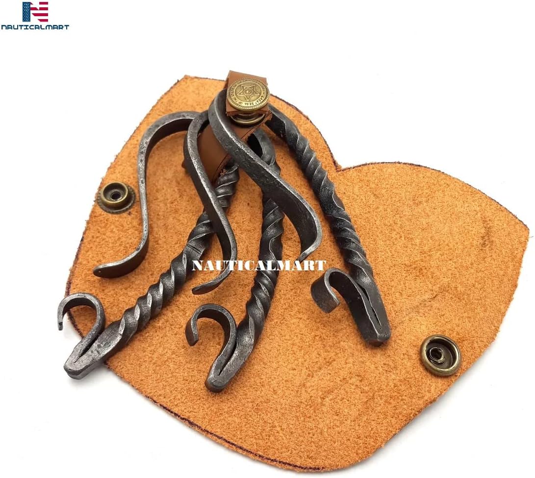 Set Of 3 Bottle Opener Medieval Hand Forged With Leather Pouch Excellent cutlery set for medieval costumes, renaissance costumes, royal costumes and Coplay events and can still be practically applied as a functional set of utensils or as a spectacle in any medieval collection, historical collection or renaissance collections. Handmade Materials: hand forged carbon steel, hand forged, carbon steel, cutlery set, larping cutlery set