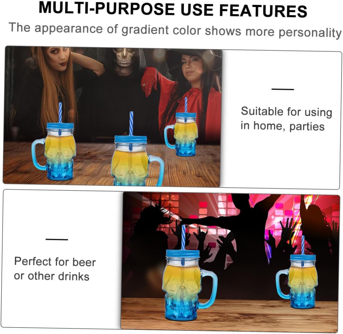 Package Include 2 x beer glass (500ML) Features - Note: Lid and straw is random color. -Product Info:Skull glass cup - Color: Gradient Blue. - Material: Glass. - The 3D skull effect is more in line with the atmosphere of Halloween party tumbler. - With fine workmanship, these bottles are of great quality halloween cups with lids. - Nice and great drinking bottles for outdoor sports use halloween cups for adults. - The handle design is more convenient to use halloween drinking. - The appearance of gradient color shows more personality.Goods Informationparty tumbler Halloween style design, make it more popular.spooky mugs Smooth surface and flat base for stable standing on desktop.skull cup drinking Select , the water glass are for home and party, bar use.halloween spooky cups Portable handle for easy to carry.skull cups This product is a drinking cup